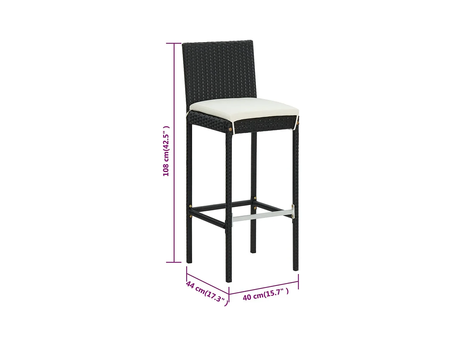 Barkrukken met kussens set van 6 zwarte rieten hars
