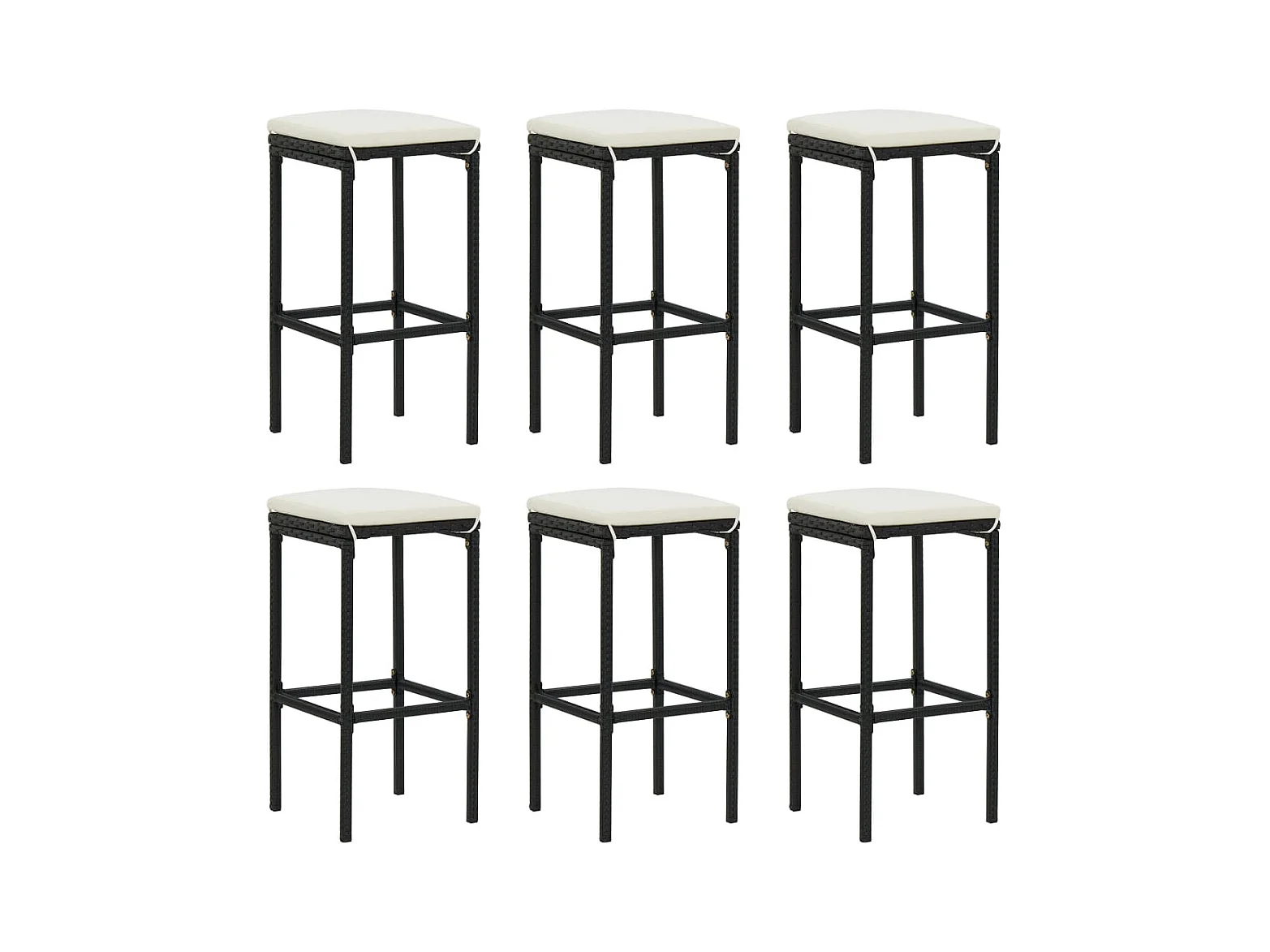 Barkrukken met kussens set van 6 zwarte rieten hars