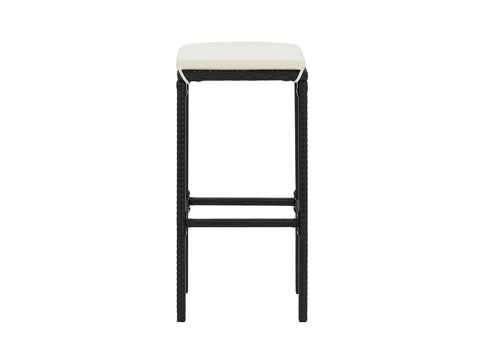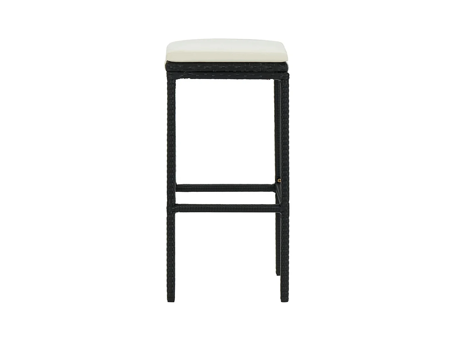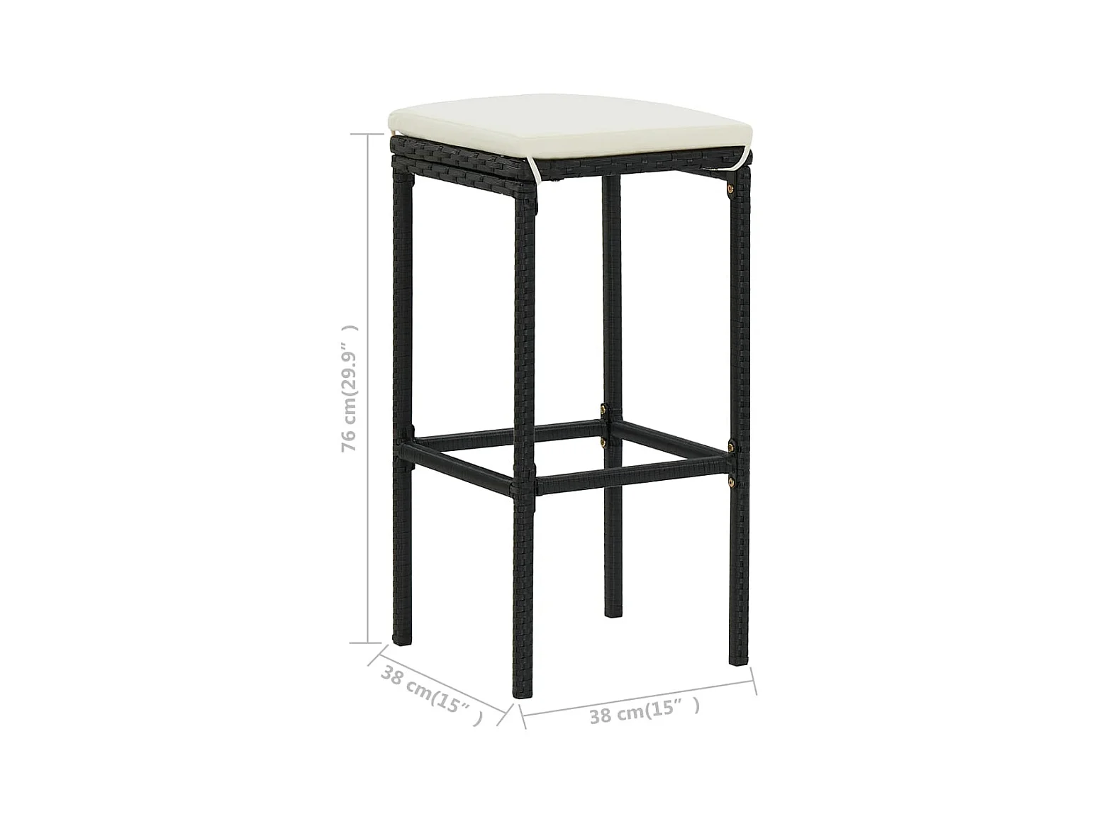 Barkrukken met kussens, set van 2, zwart, geweven hars