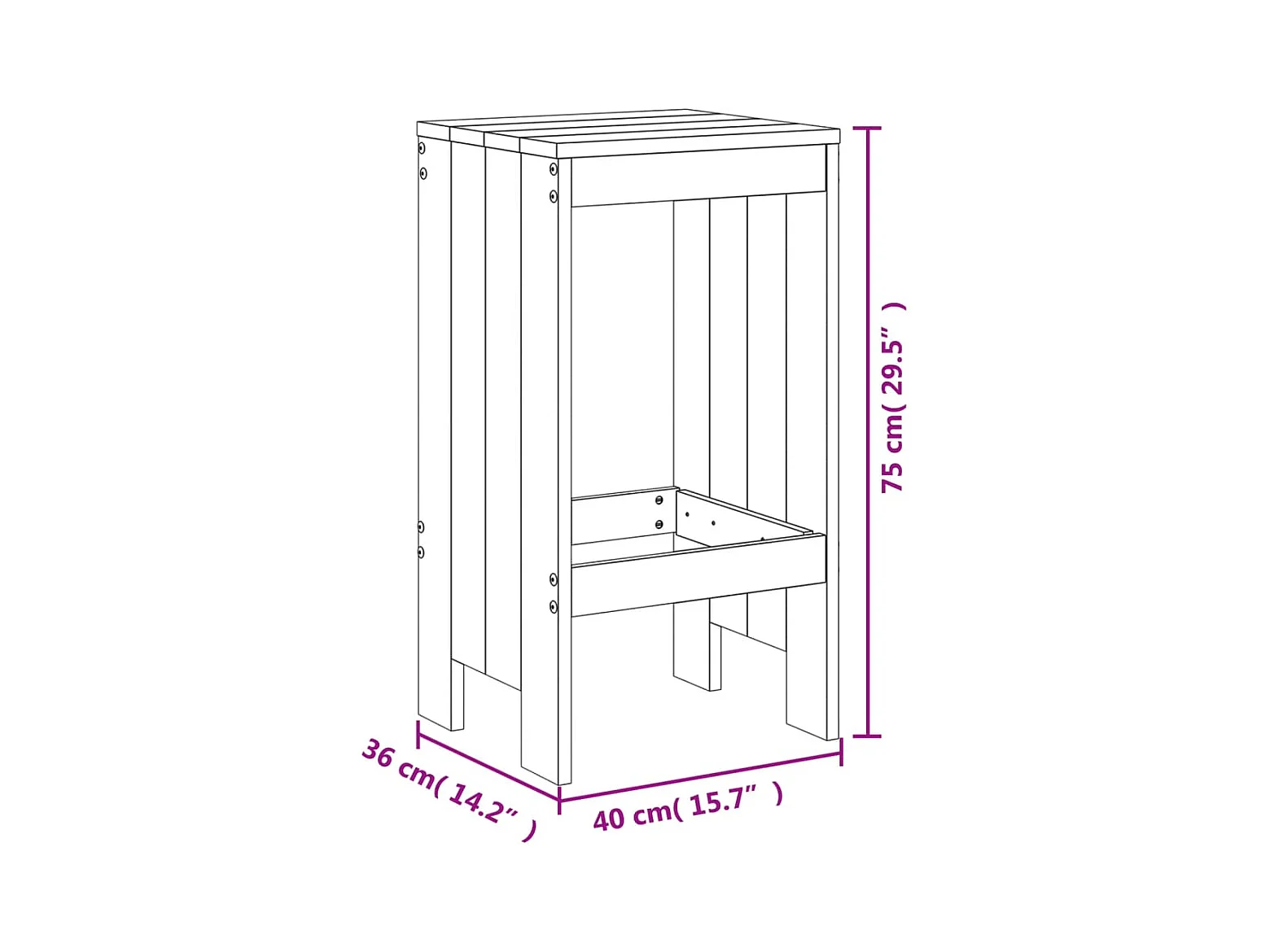 Barkrukken set van 2 40x36x75 cm massief grenenhout