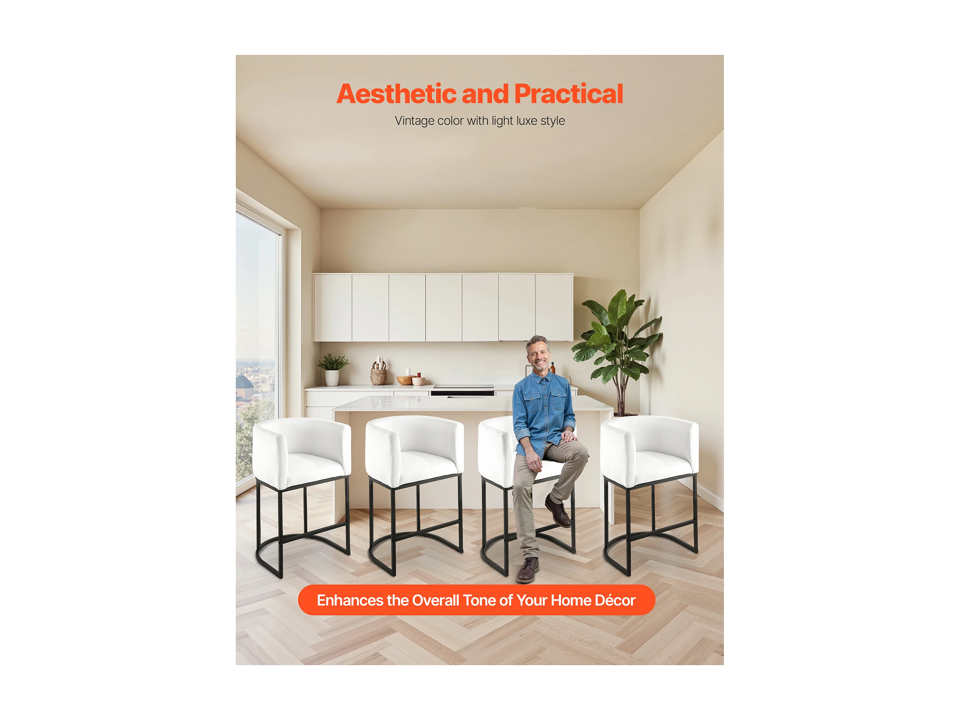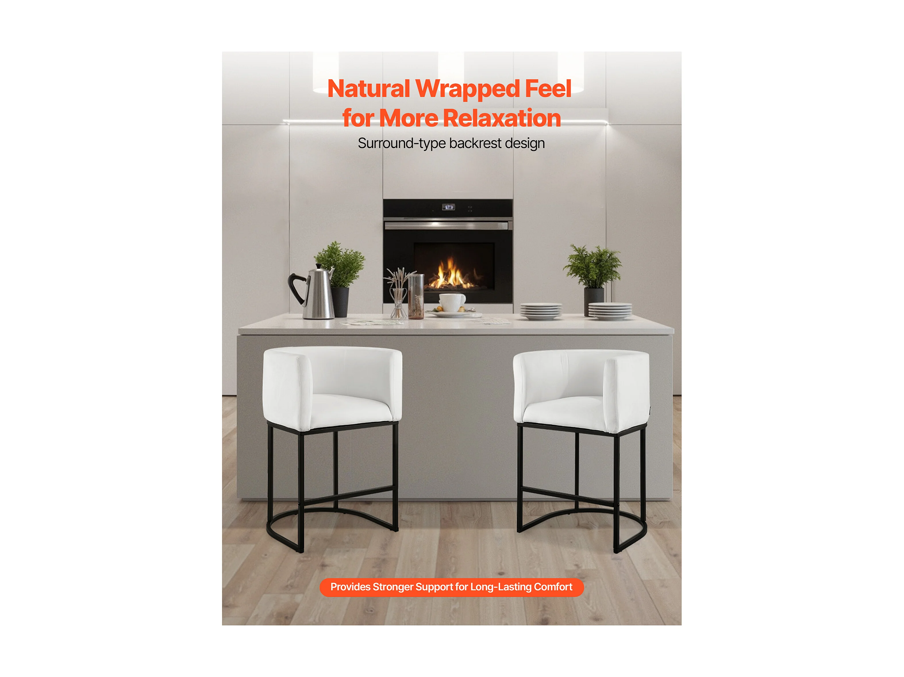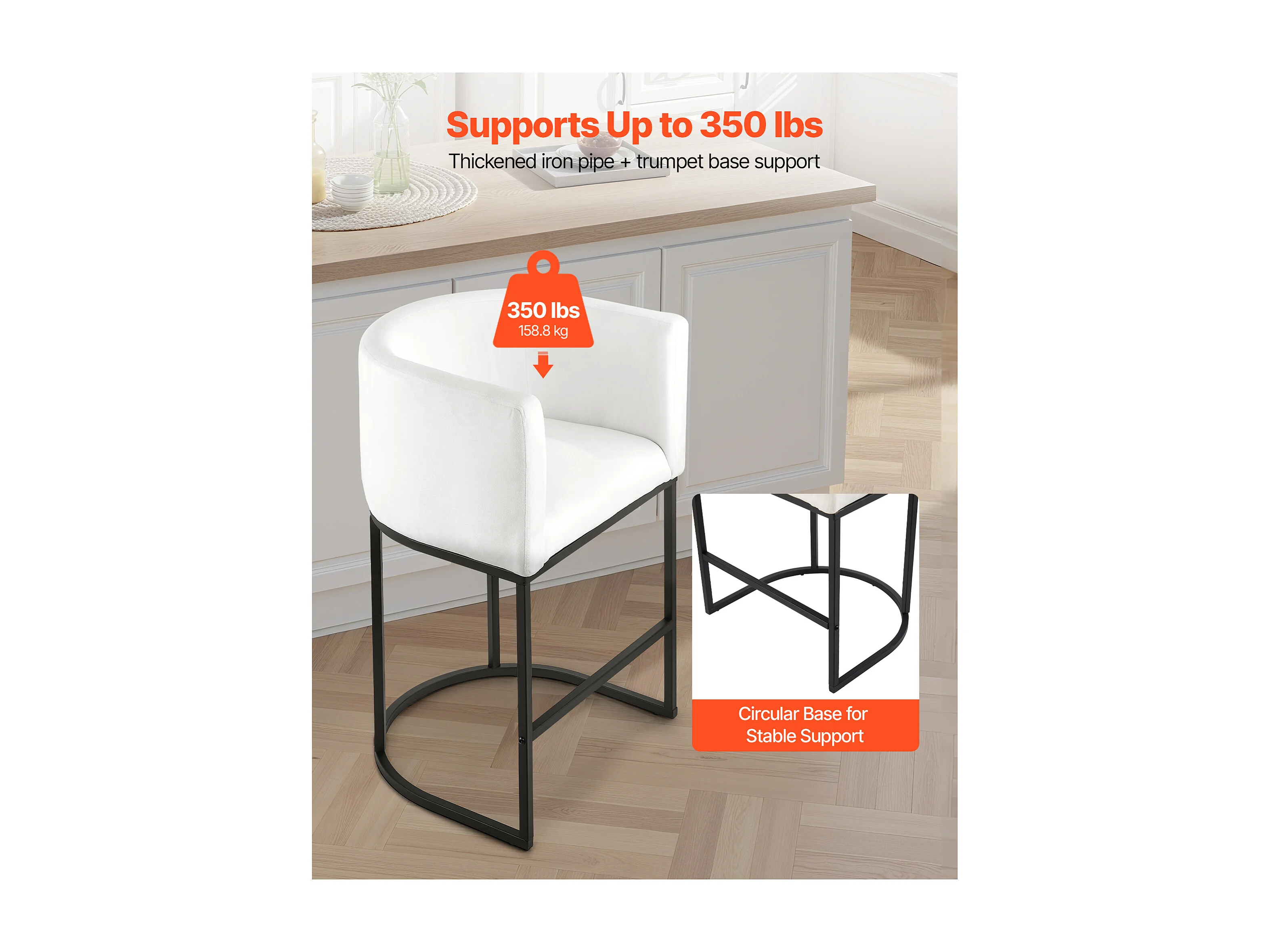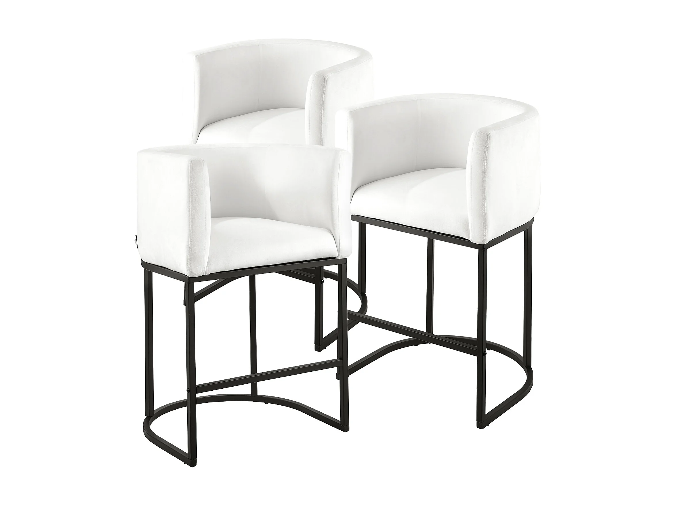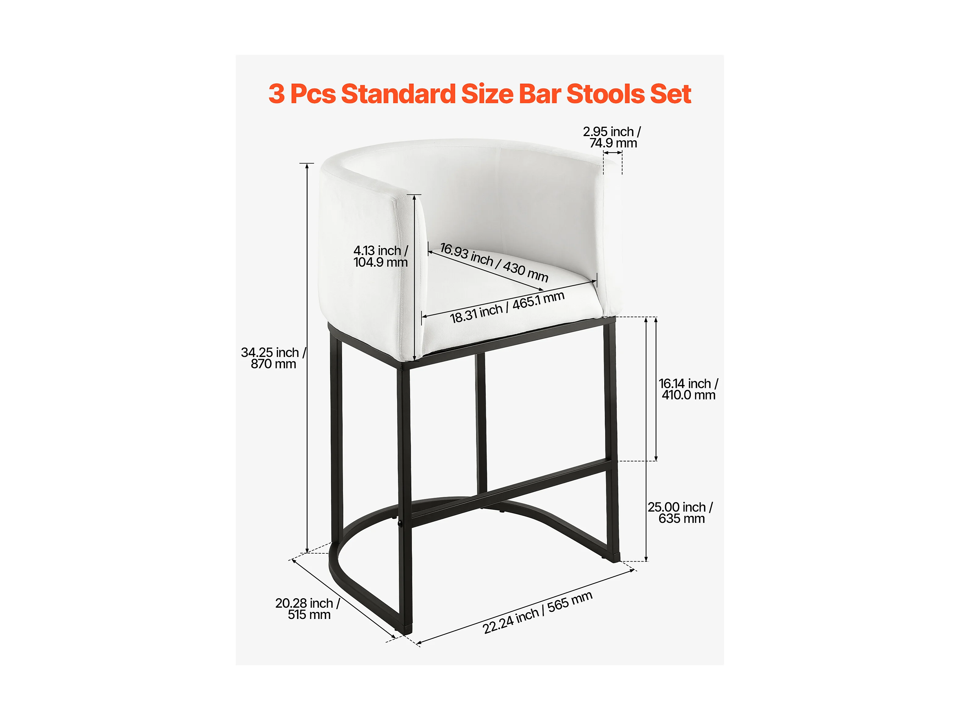 Barstoel SucceBuy, Set van 3, Barstoel in Stof, 63.5 cm Hoog, Keukenstoel met Rugleuning, Armleuningen, Metaalstructuur En Voetensteun, Wit