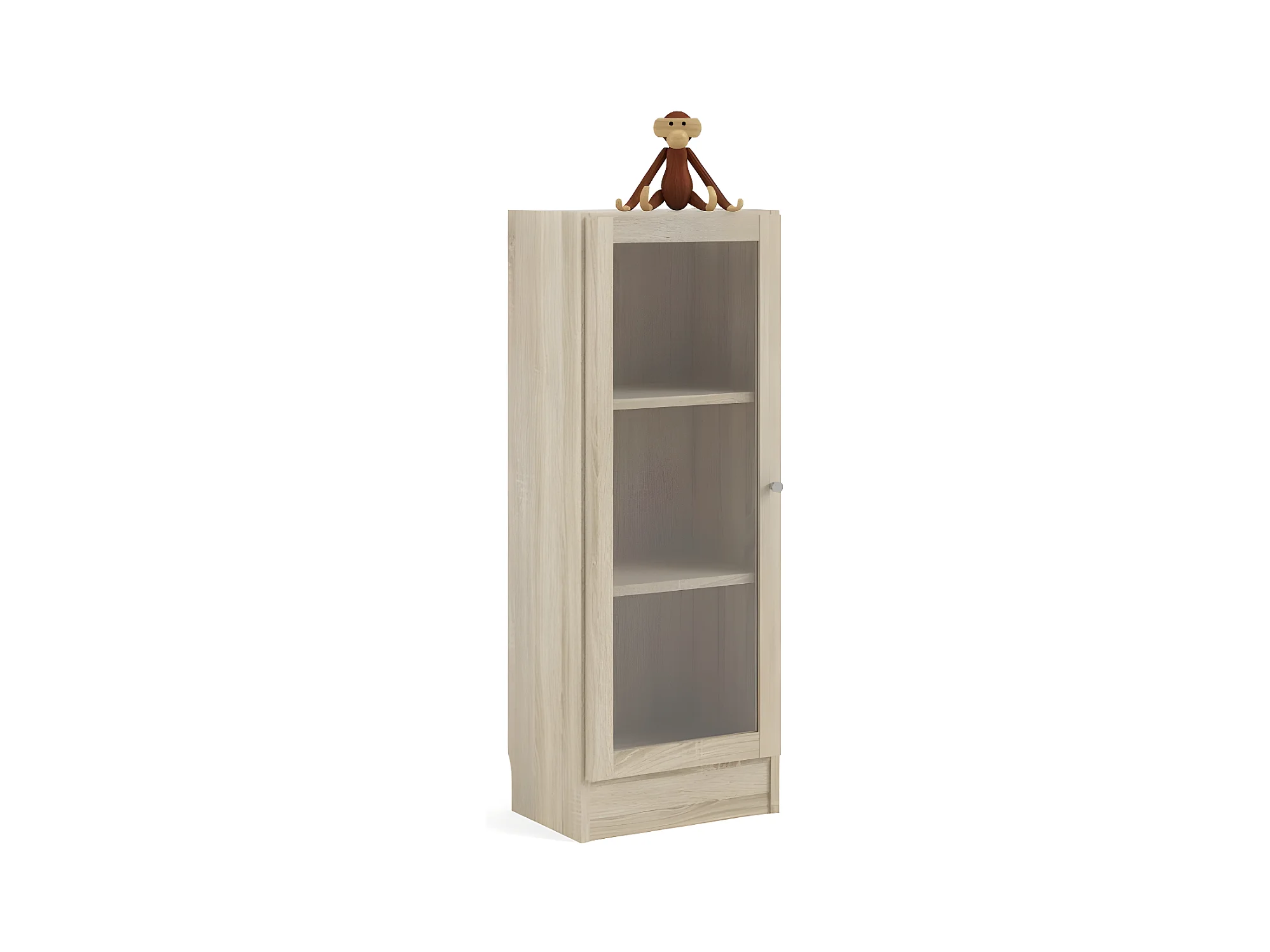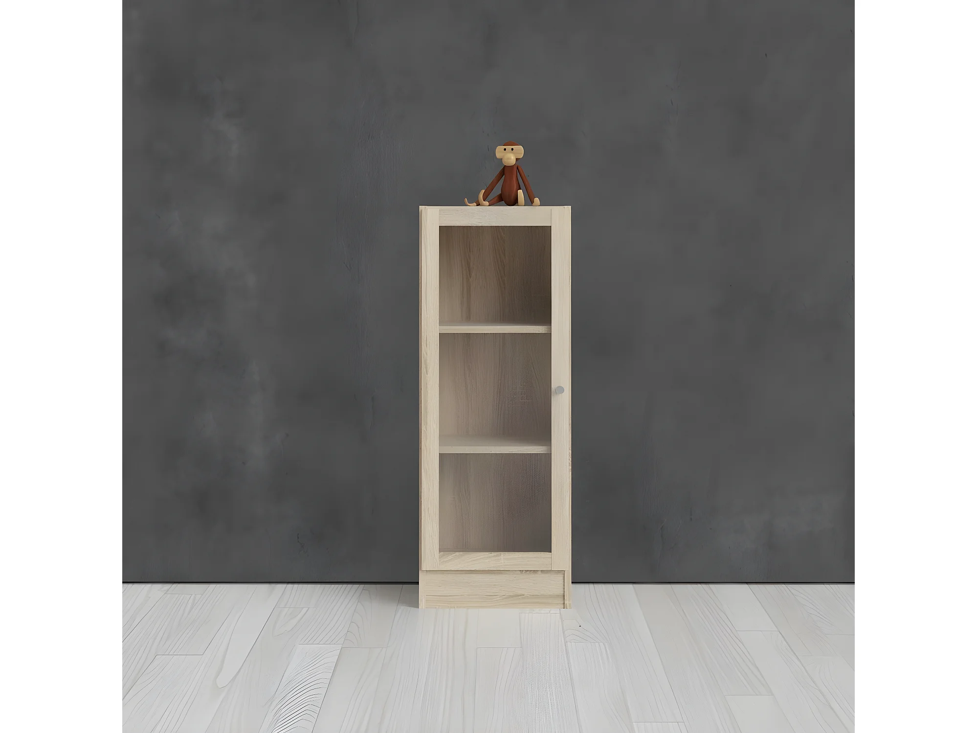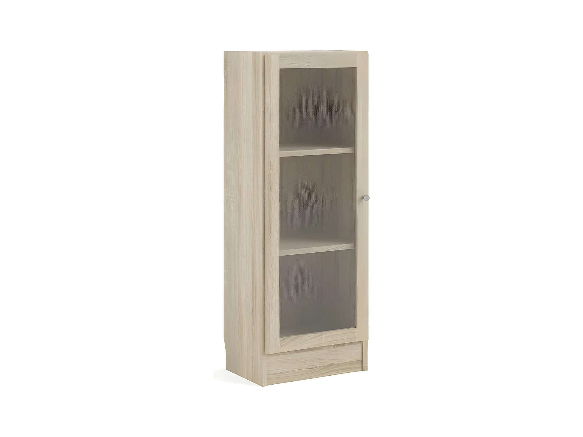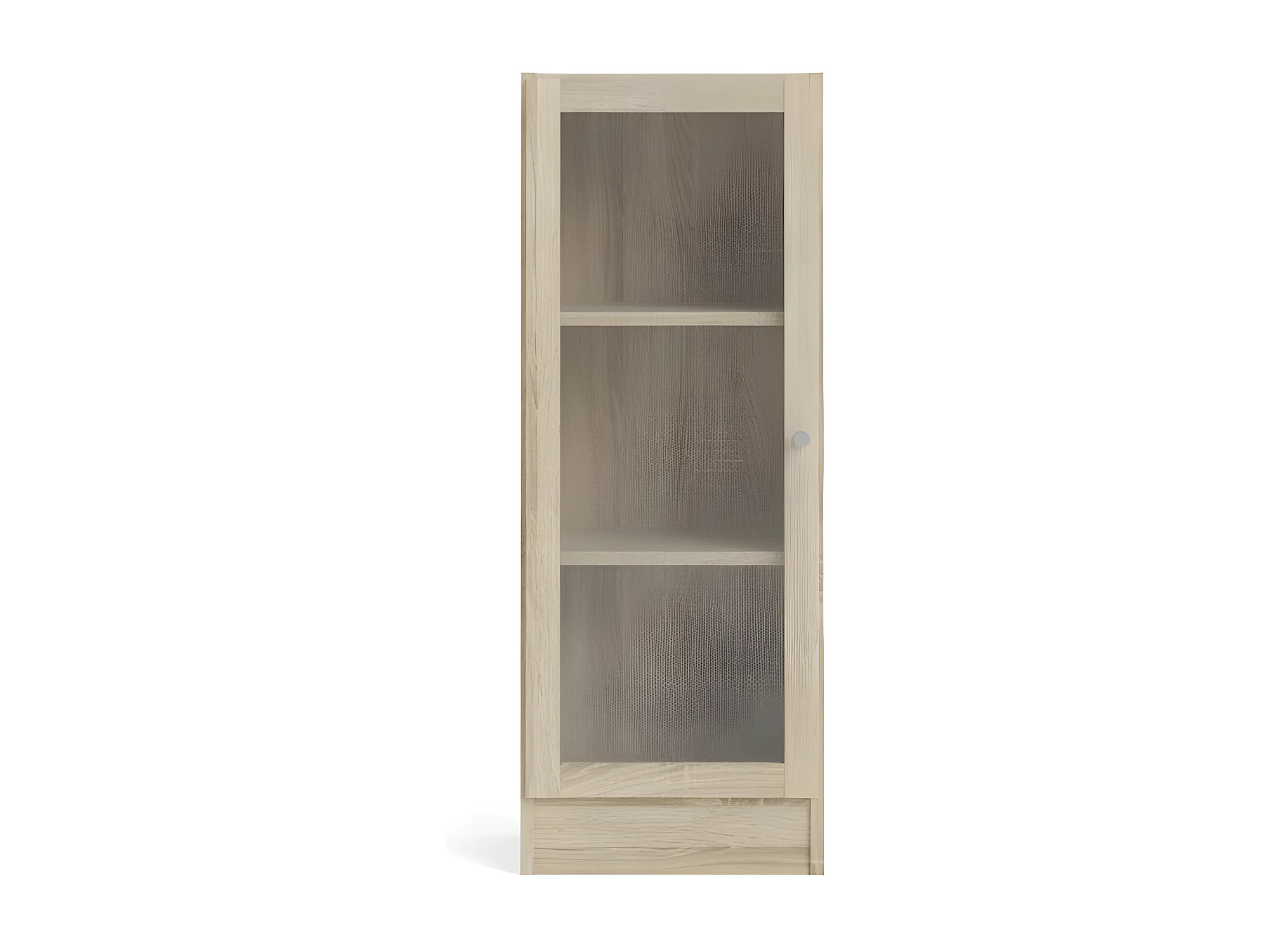 Base wandkast 1 glazen deur eiken structuur, wit.