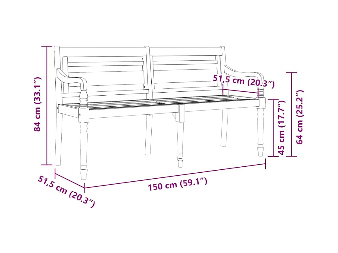 Batavia bank met bordeauxrood kussen 150cm Massief teakhout