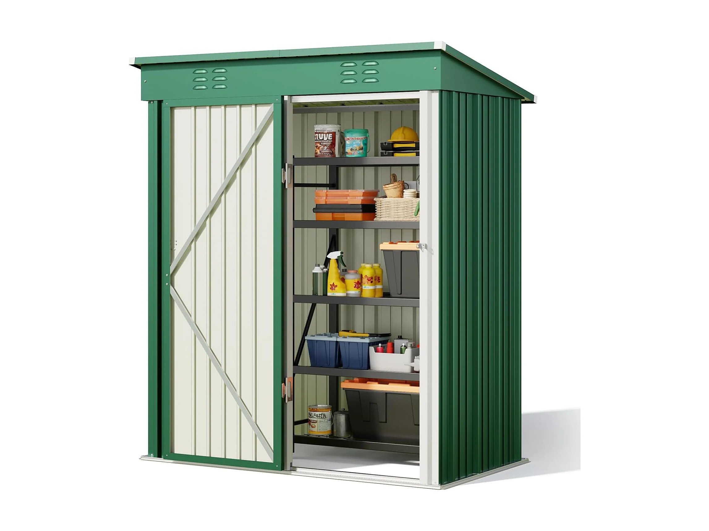 Bealife metalen tuinhuis 162 x 95 x 182 cm groene schuur op het terrein