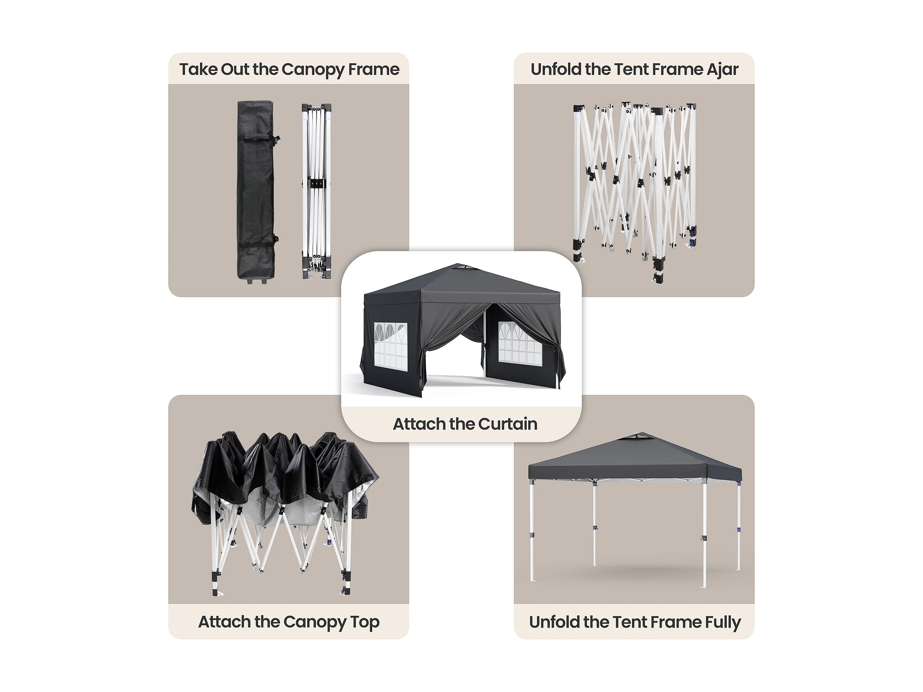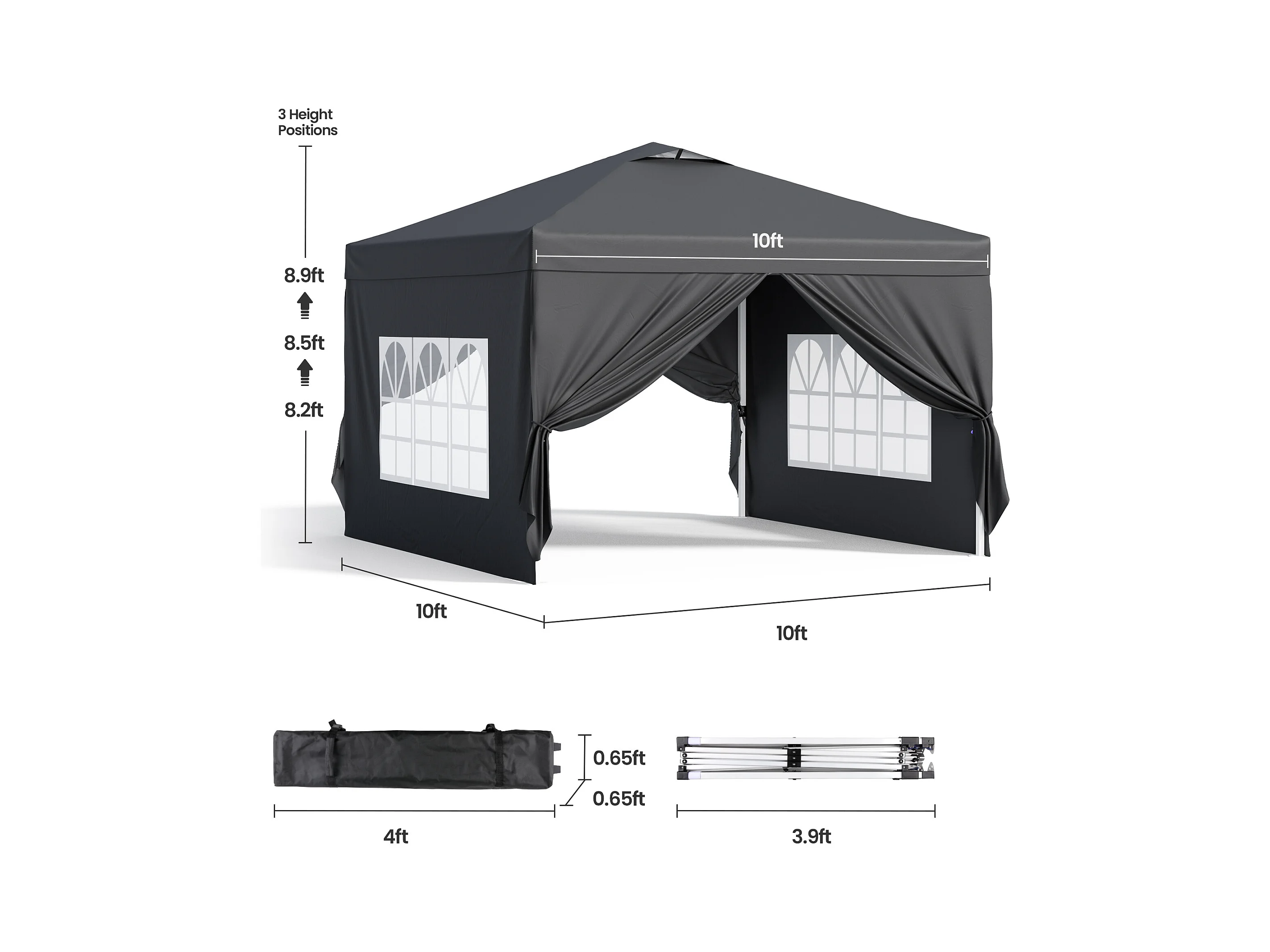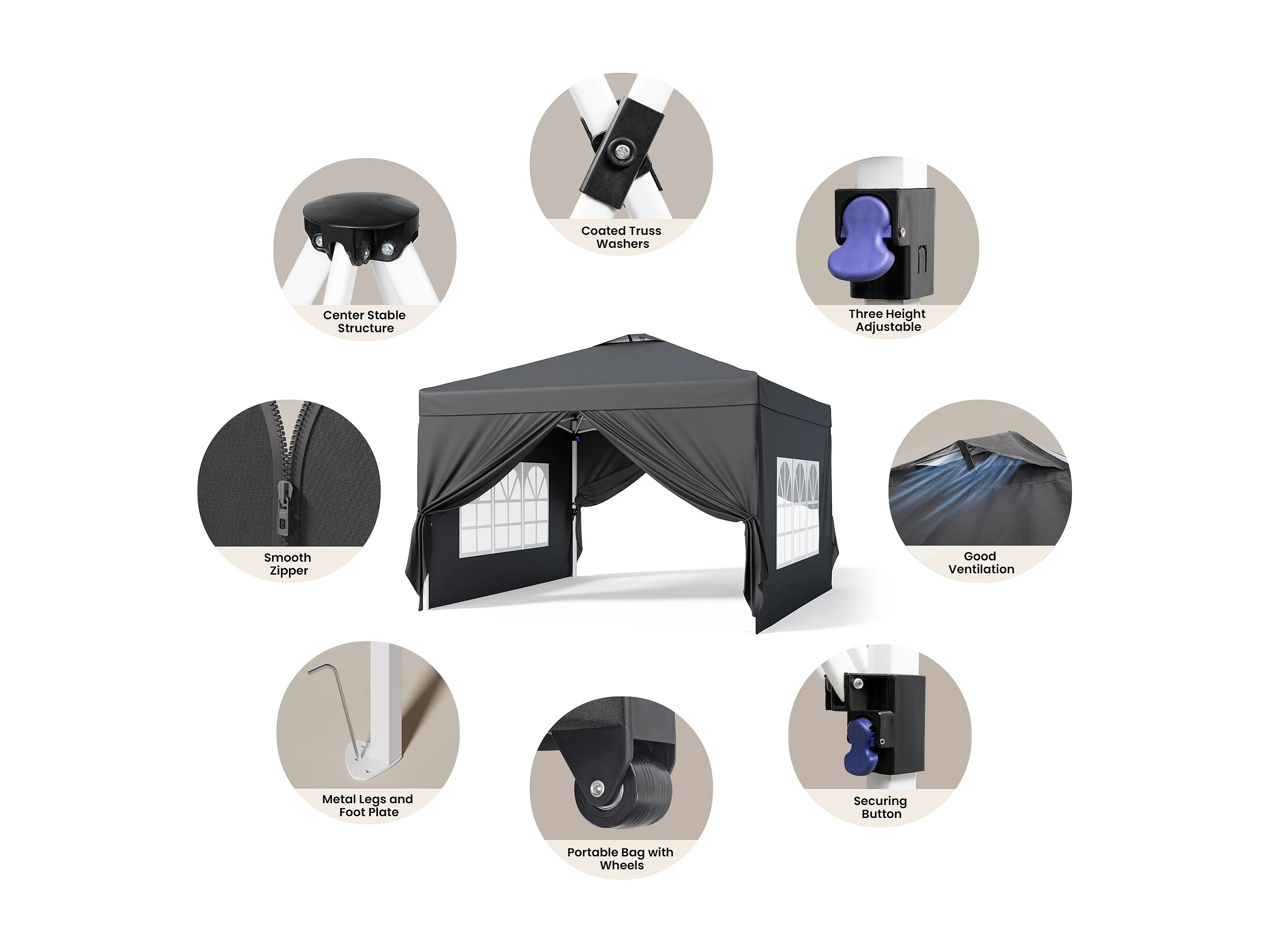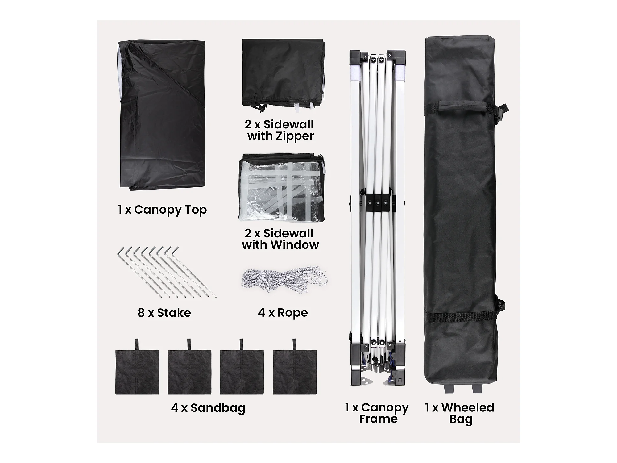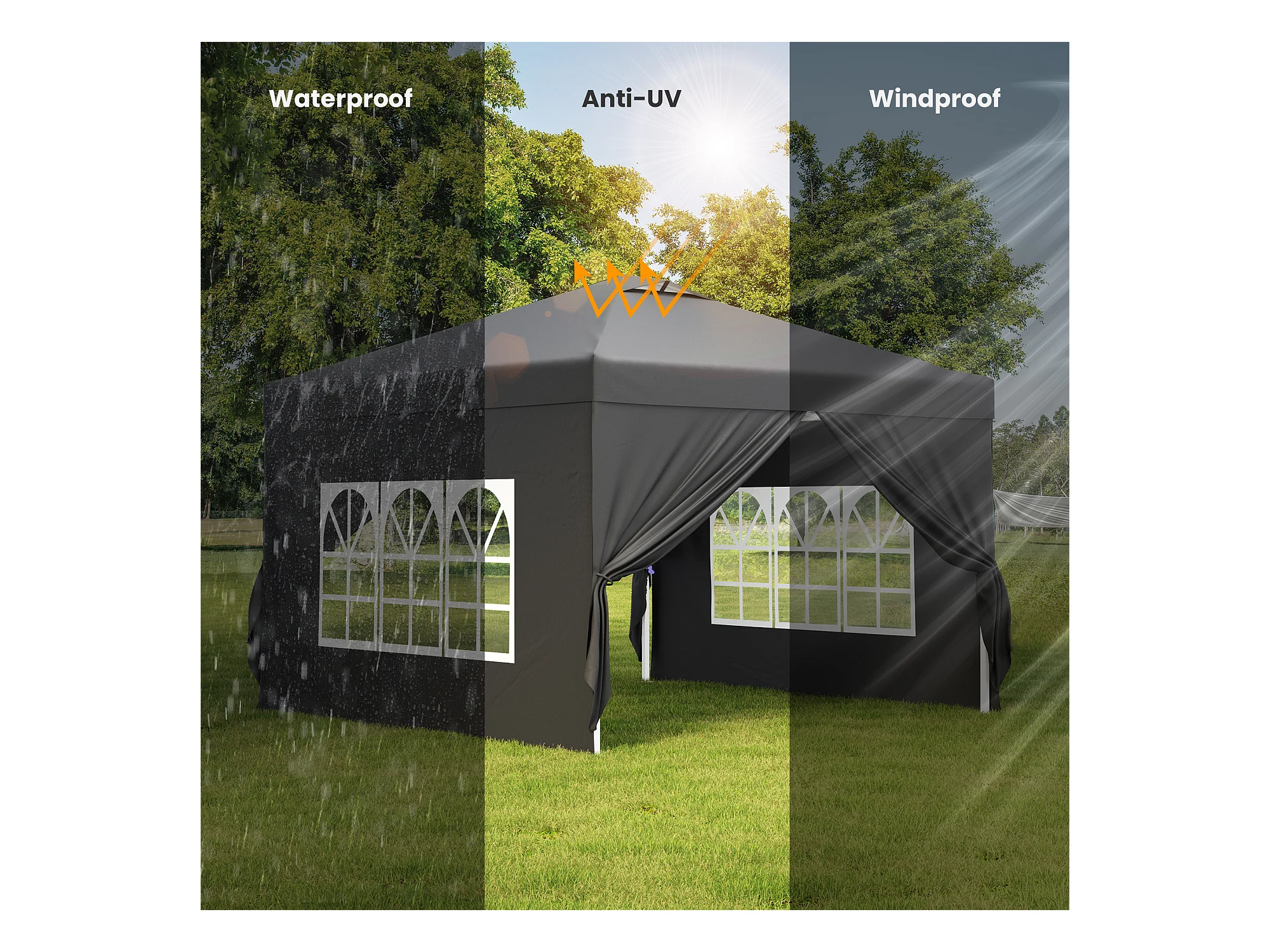 Bealife vouwbare tuinhuis 3 m x 3 m – Eenvoudig te monteren, Groot oppervlak, zwart