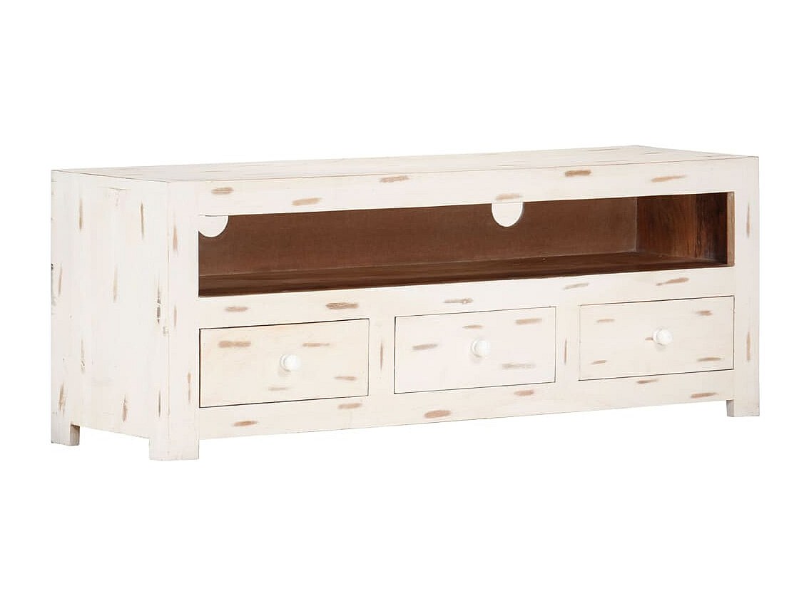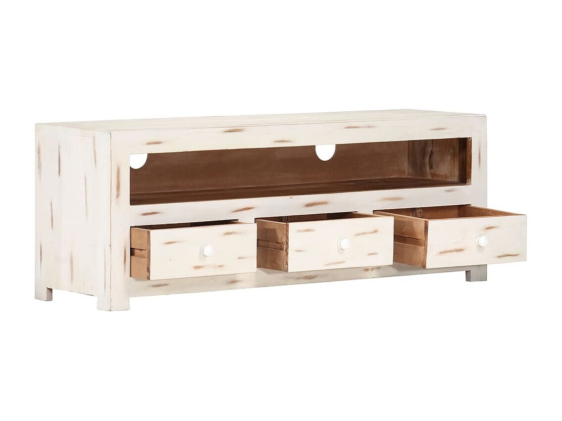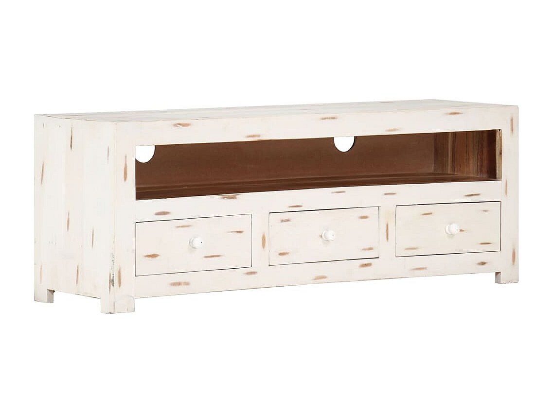 Becky Tv-meubel 110x30x40 cm massief acaciahout wit