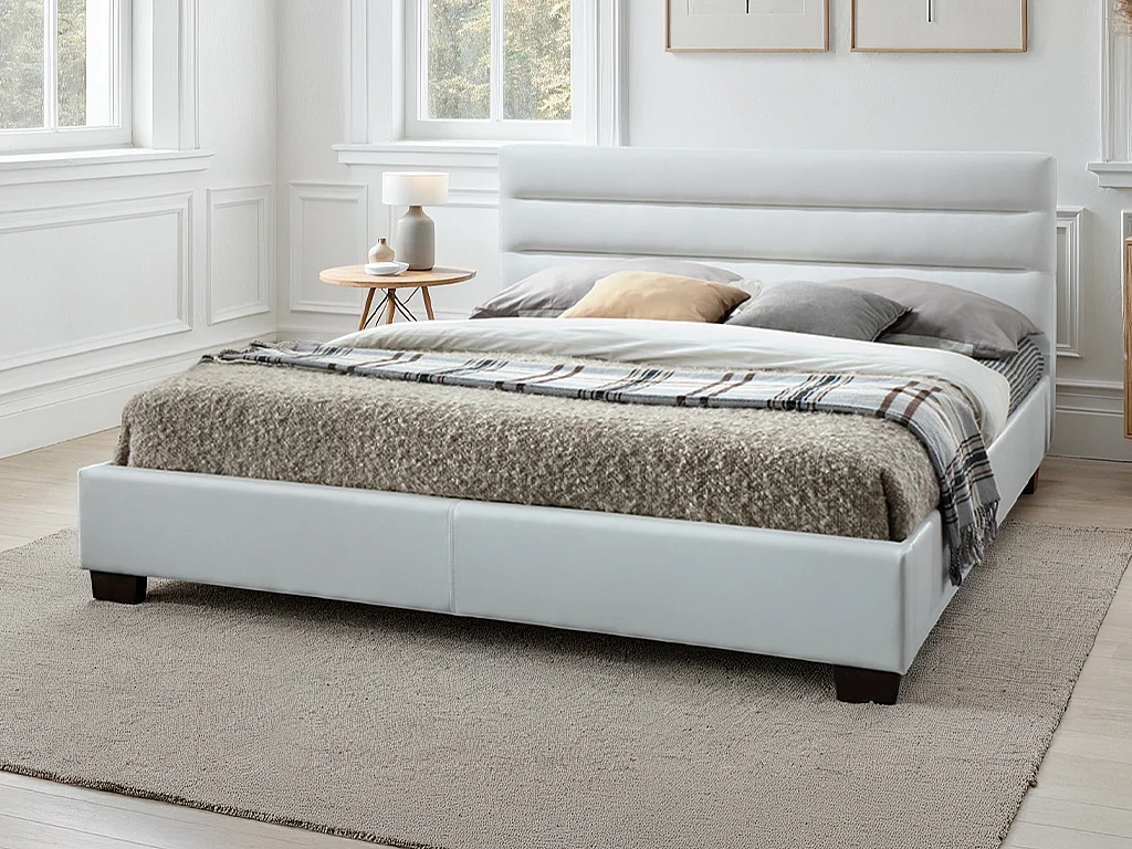 Bed 160 x 200 cm - Kunstleer - Wit + matras - FAUSTIN