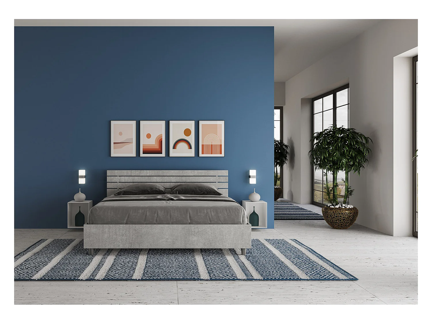 Bed met 160x190 basis, recht hoofdeinde met Enkelcementlatten