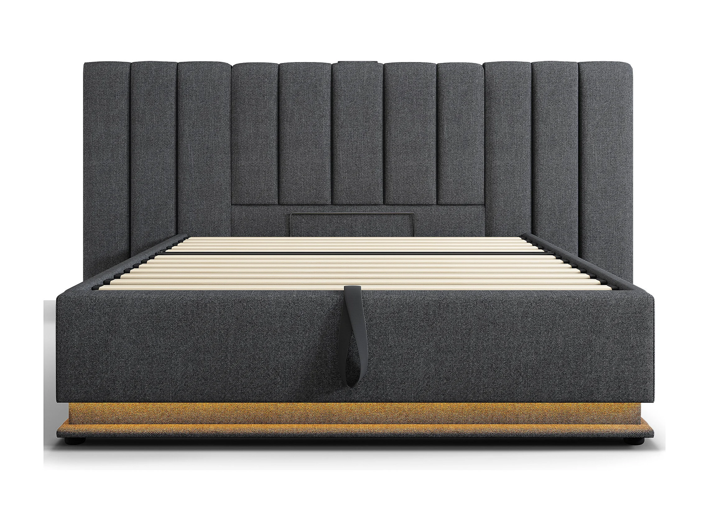 LED tweepersoonsbed met USB Type-C-oplader, opbergruimte, grijs linnen, frame met lattenbodem (146,5x208x110,5cm)