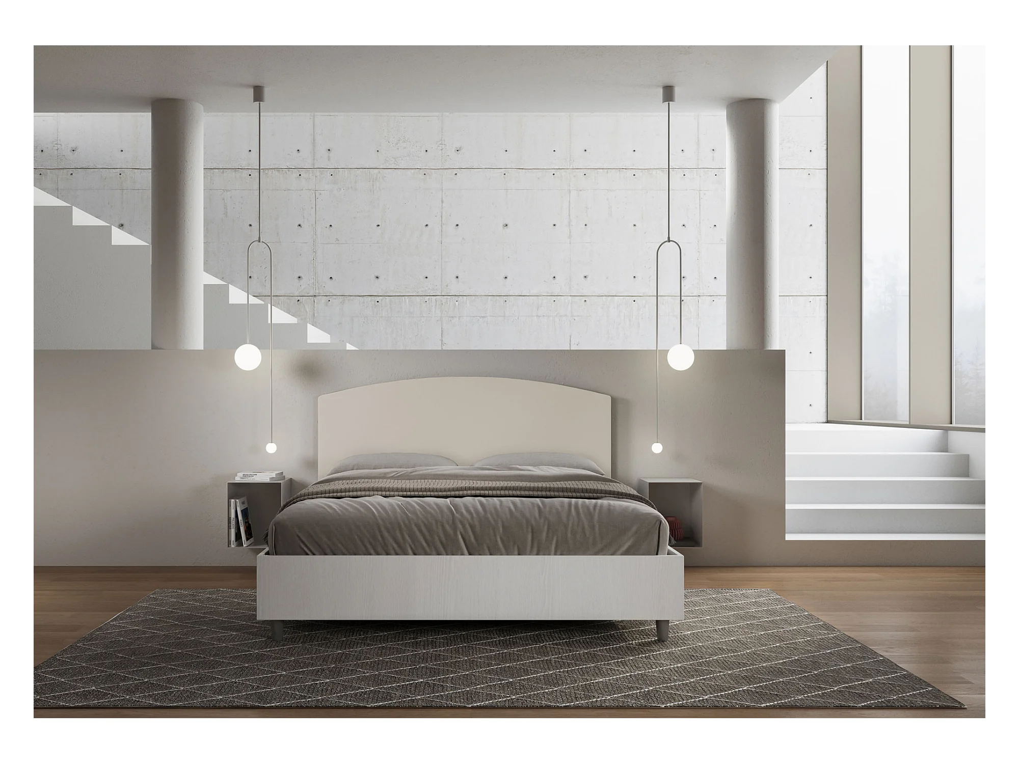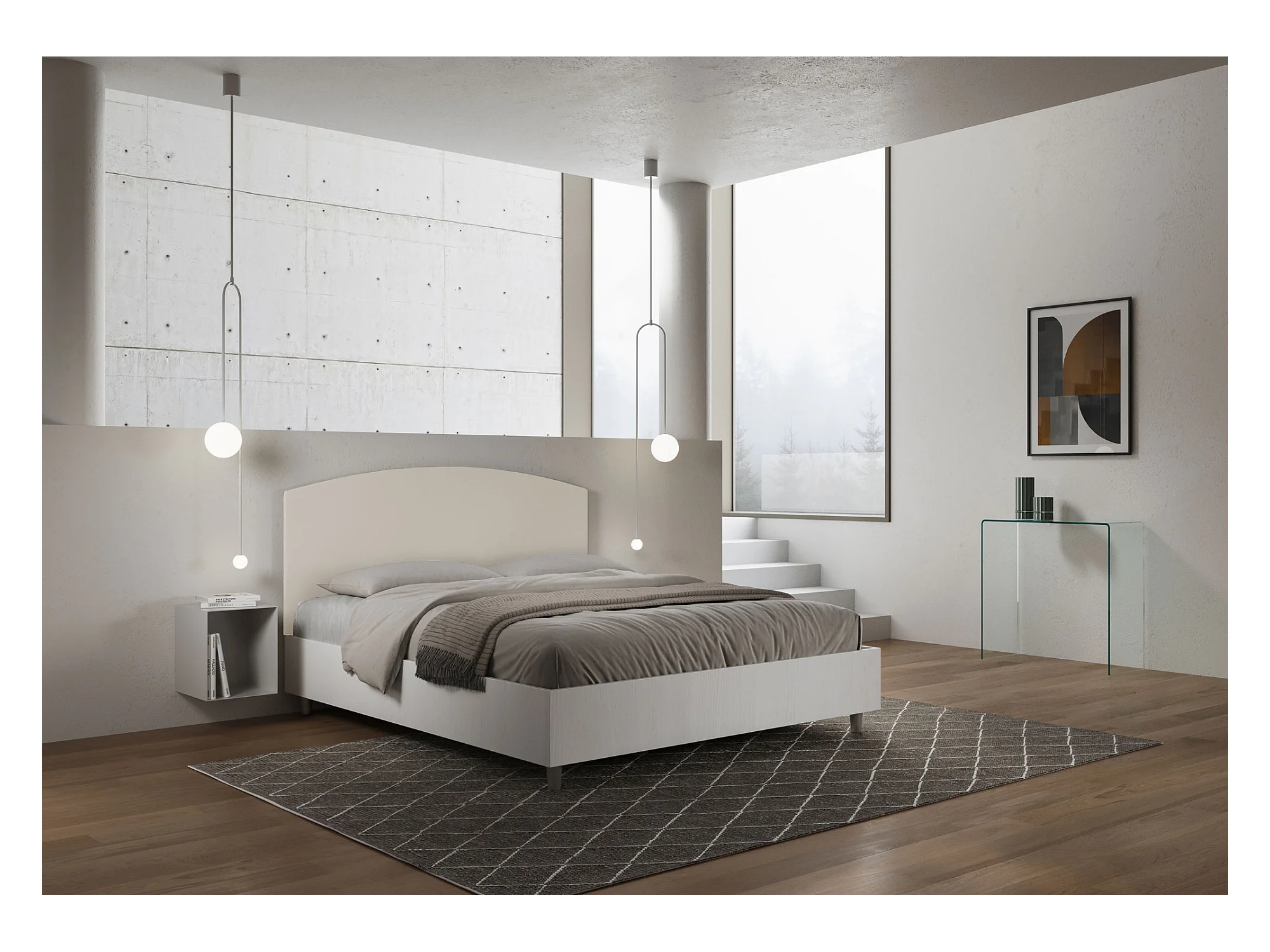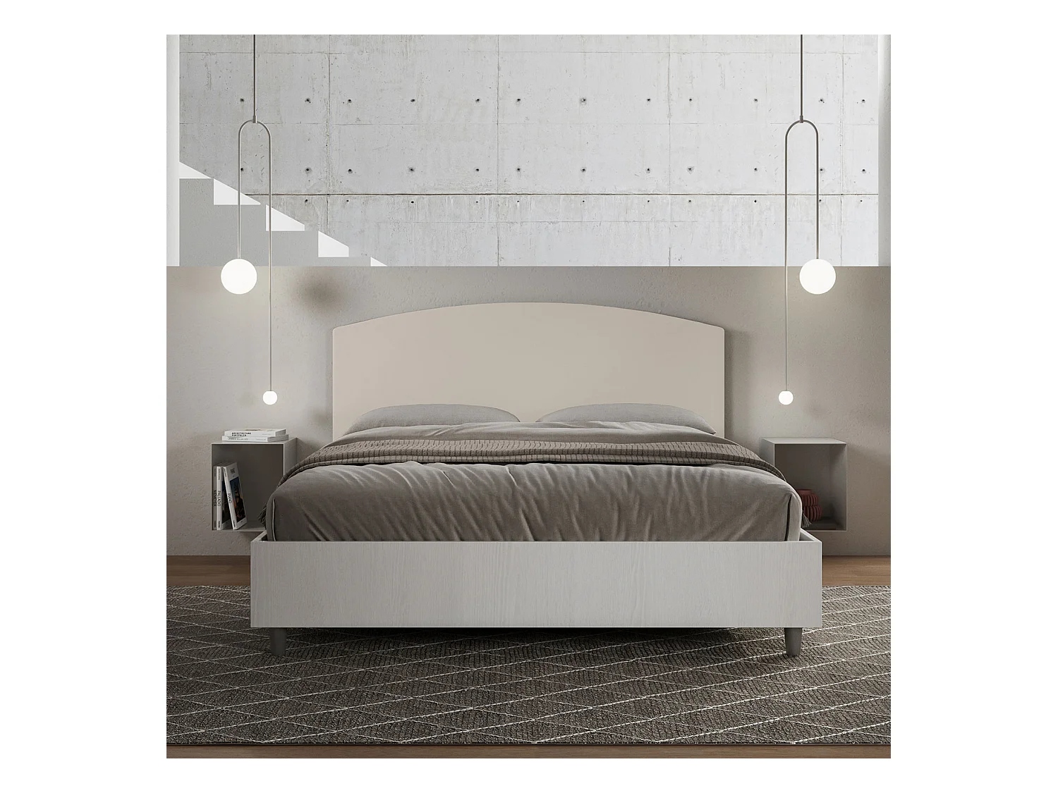 Bed met 160x200 basis, witte essenhouten structuur, melamine/imitatie duifgrijs Antilia hoofdbord