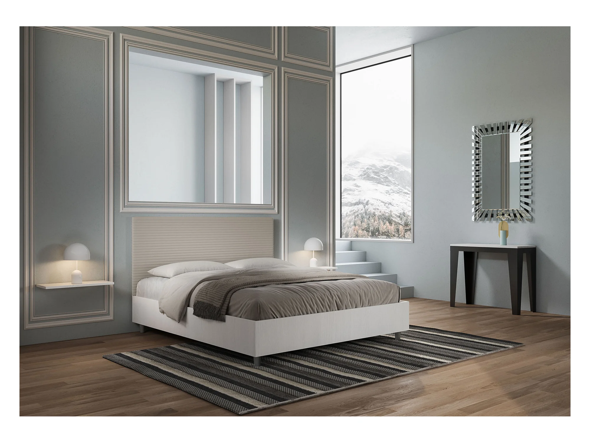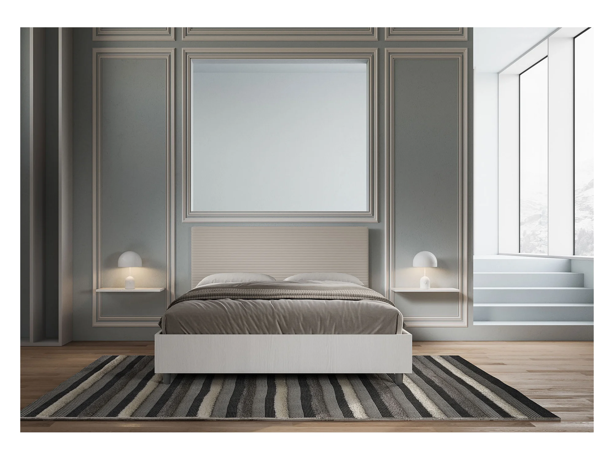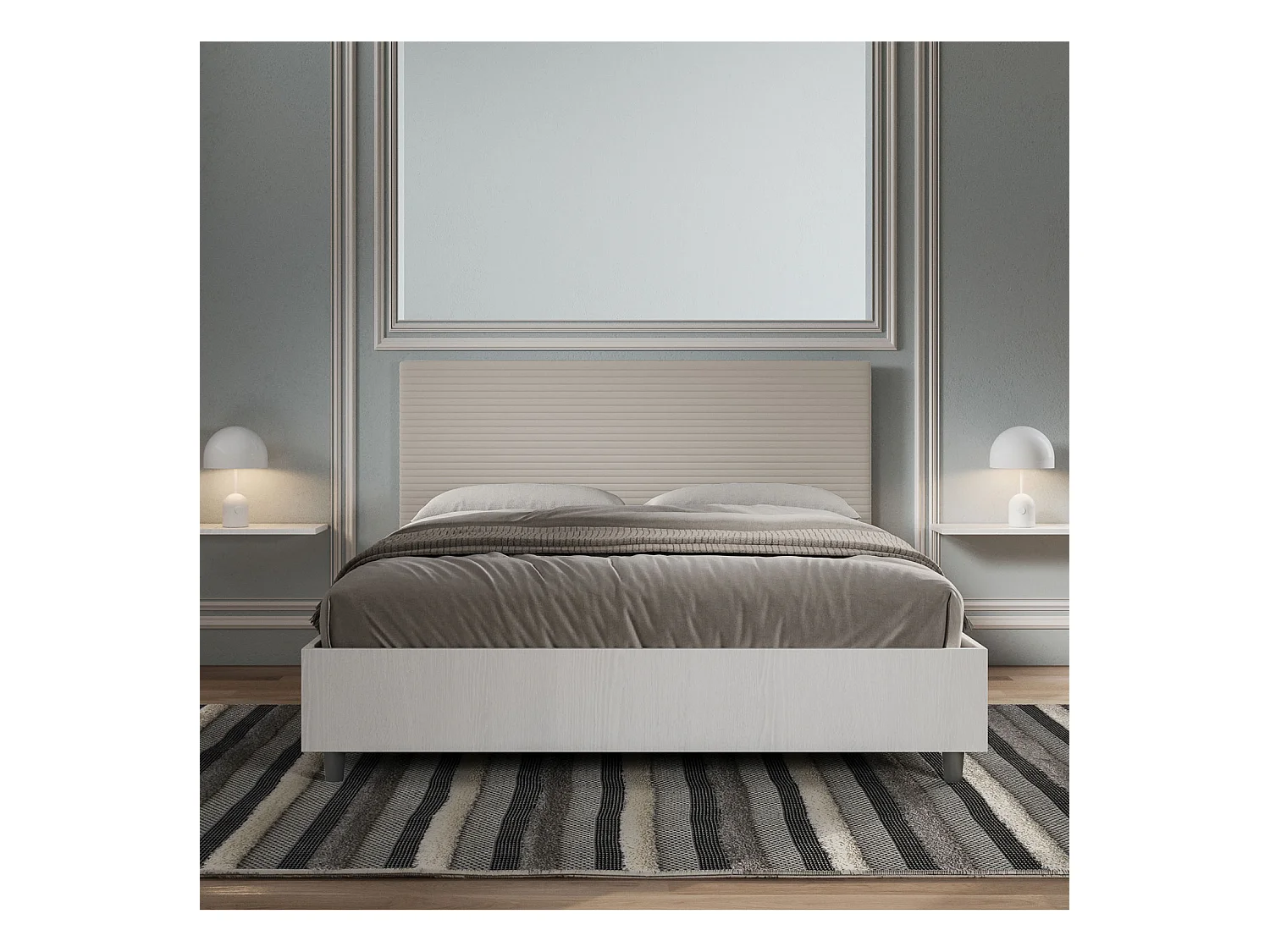 Opbergbed 160x200 witte essenstructuur met melamine/duifgrijs kunstleer hoofdbord Level