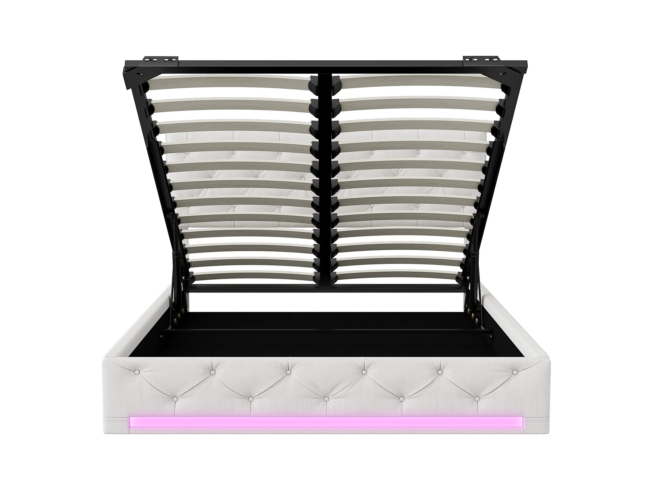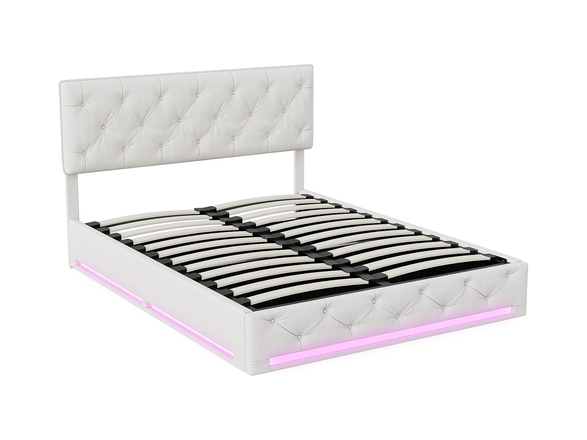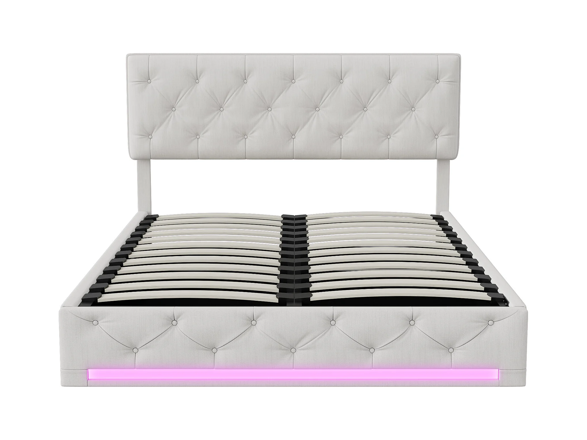Tweepersoonsbed 160x200 met LED-hoofdbord en USB-C-lader, hydraulisch bed, beige (zonder matras)