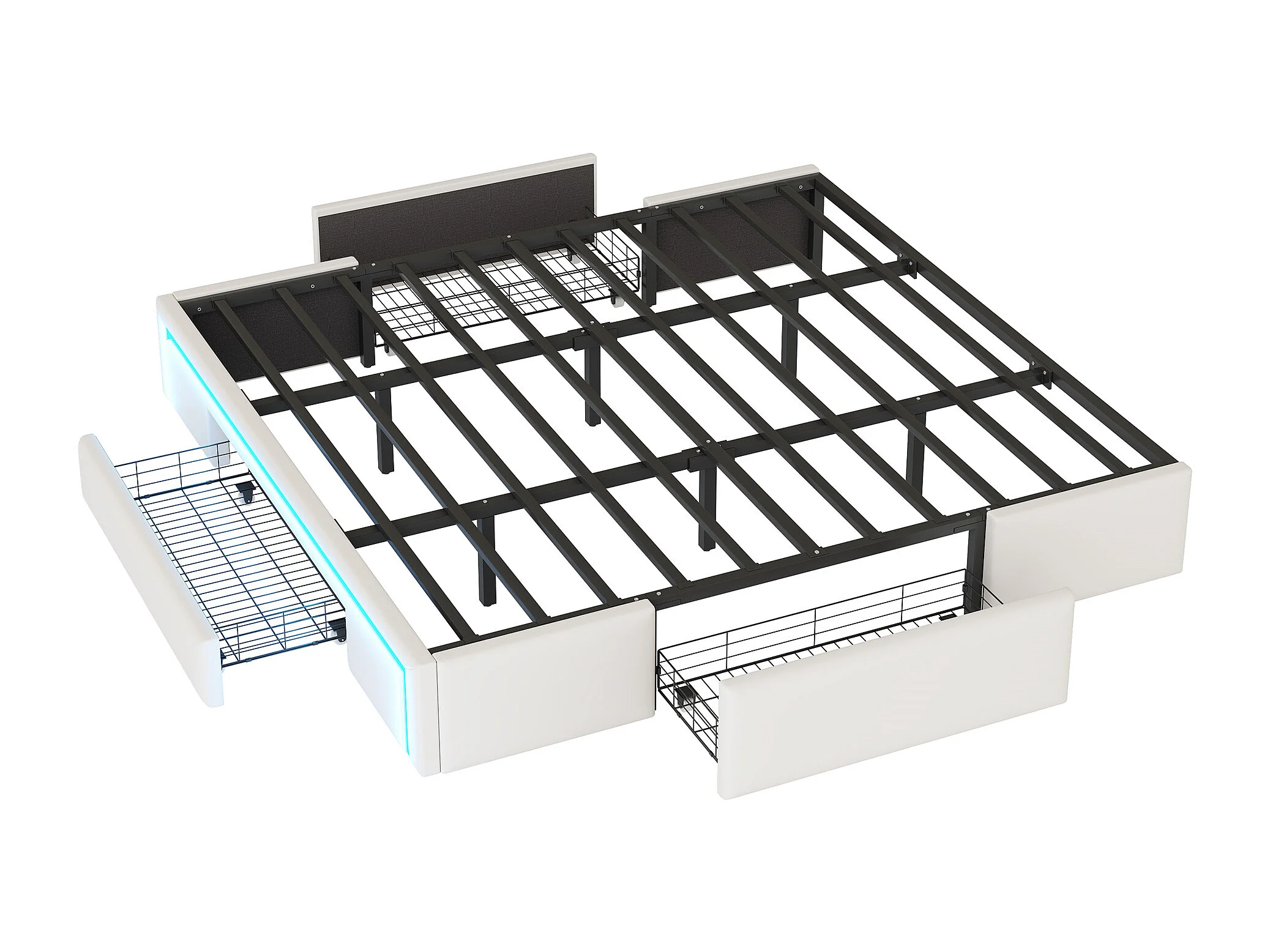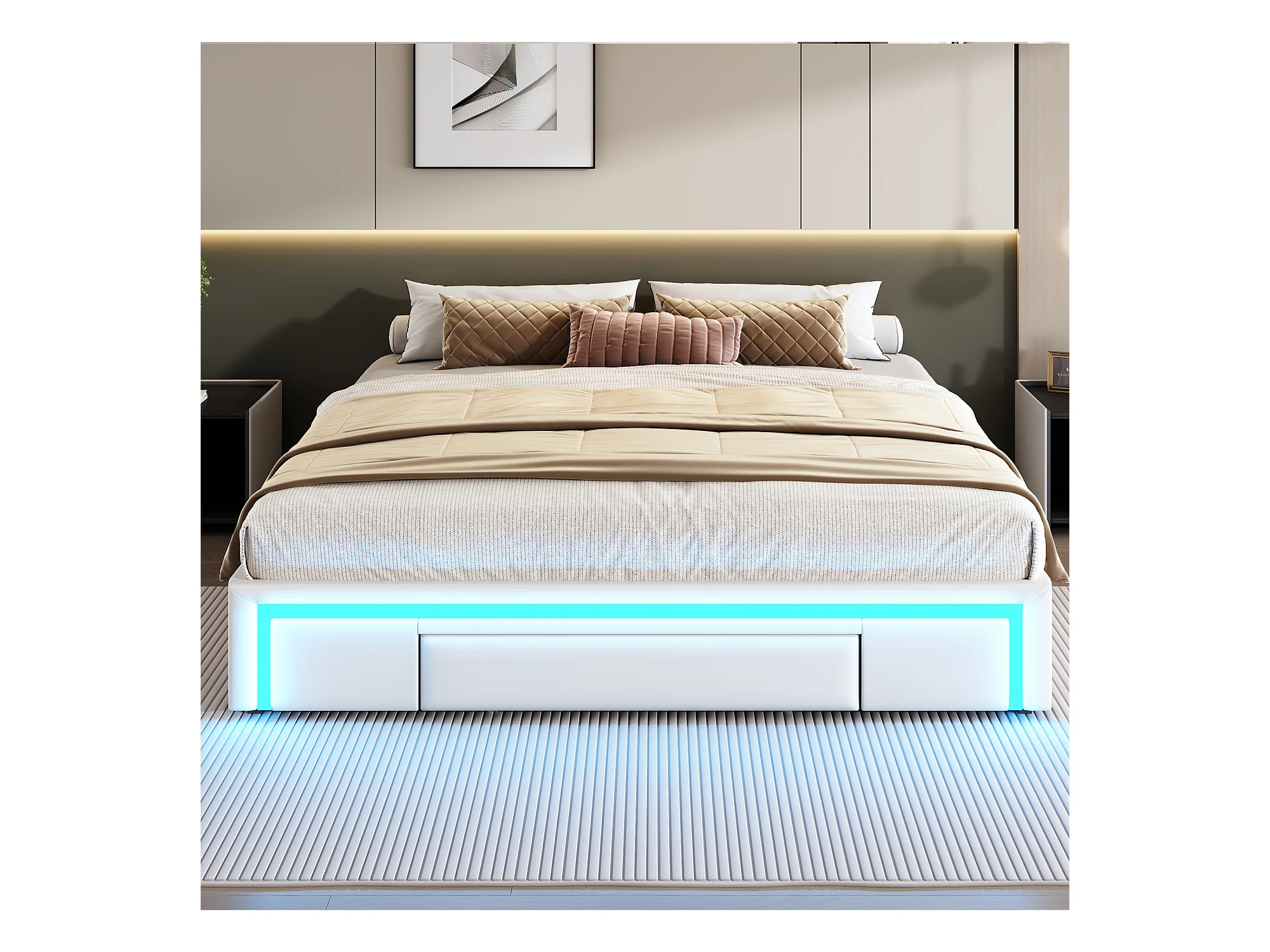 Bed 180x200 cm met lades, met LED, tweepersoonsbed met metalen lattenbodem, zonder hoofdeinde, beige
