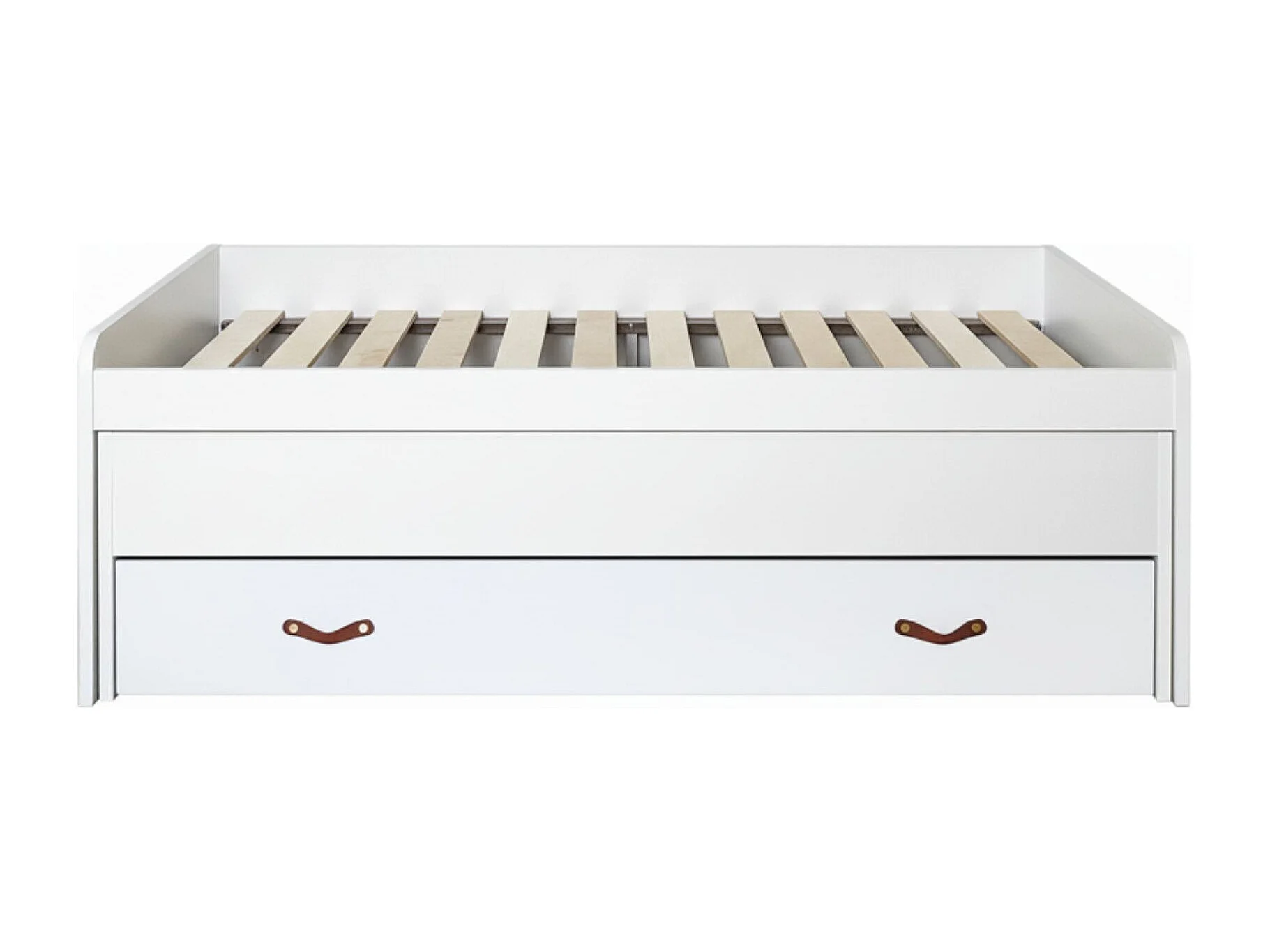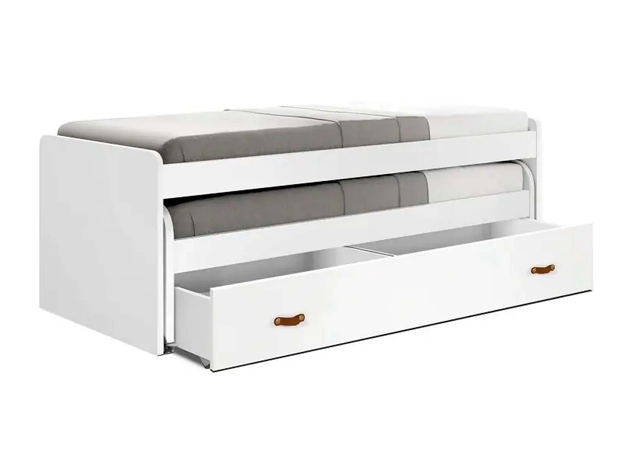 Bed 90 + lades van witte spaanplaat met lattenbodems en matrassen 90x200cm