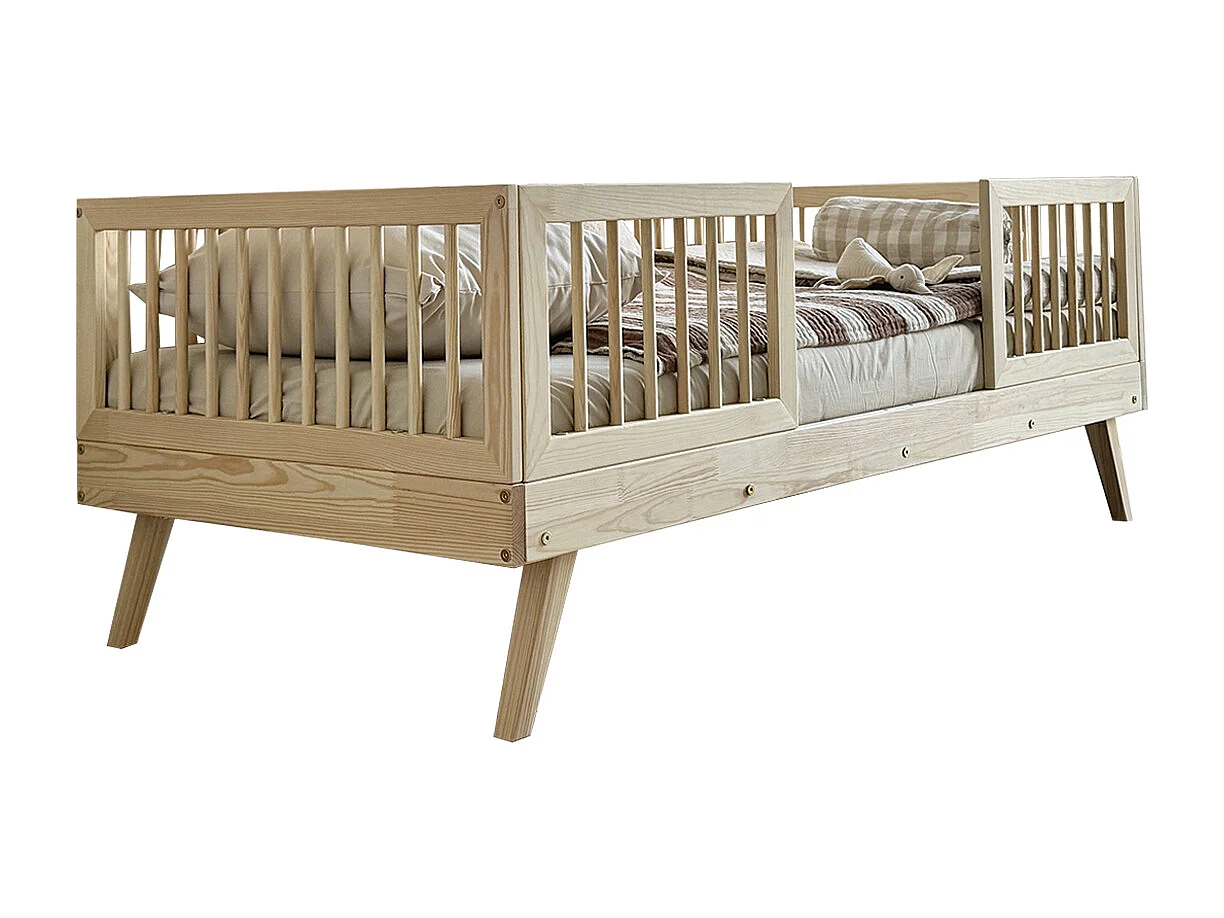 Bed 90x200 met hoge spijlen en bodem inclusief poten 20 cm Maylis Bois