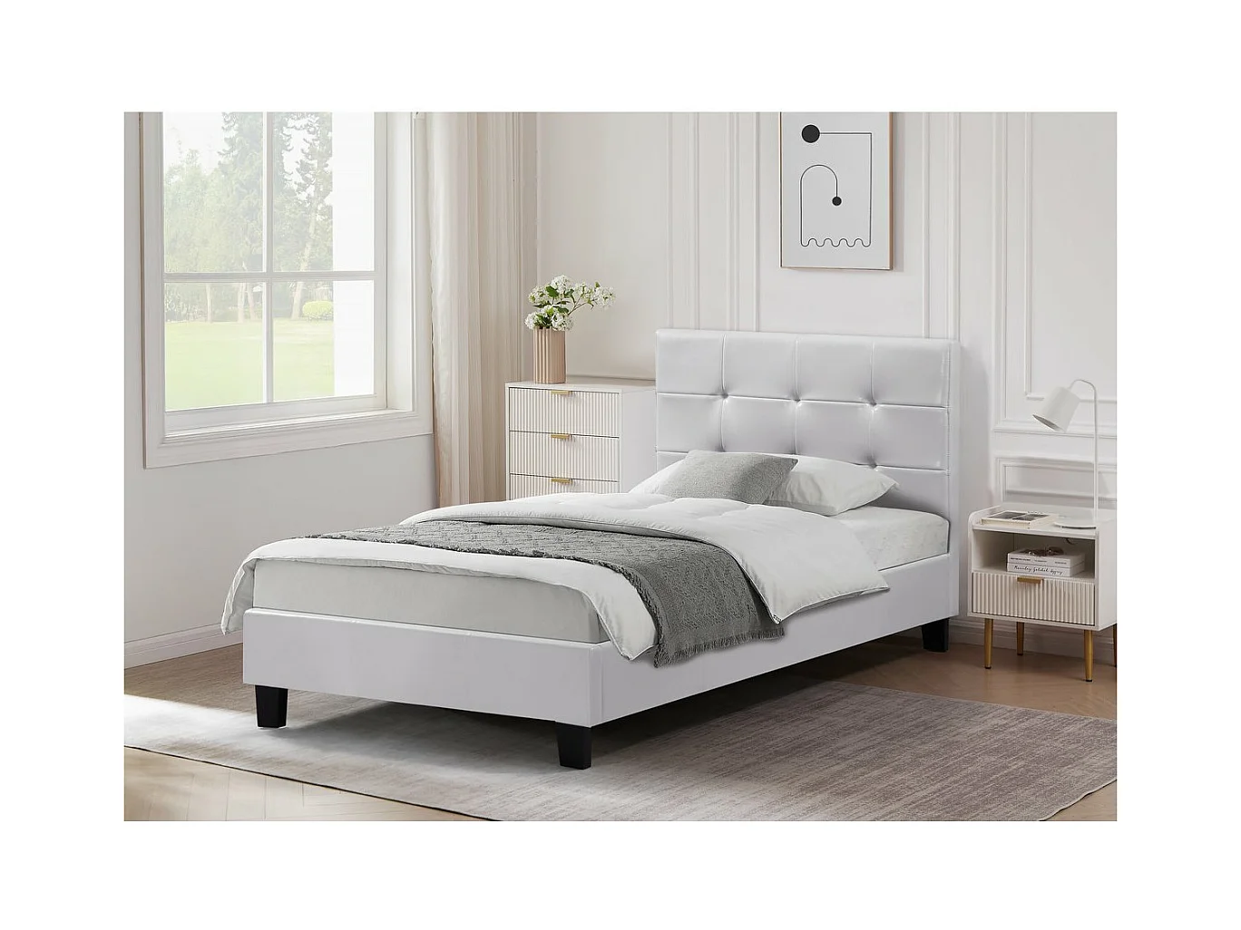 Bed "Julia" PVC Wit met Gestoffeerd Hoofdeinde - 90 x 190 cm
