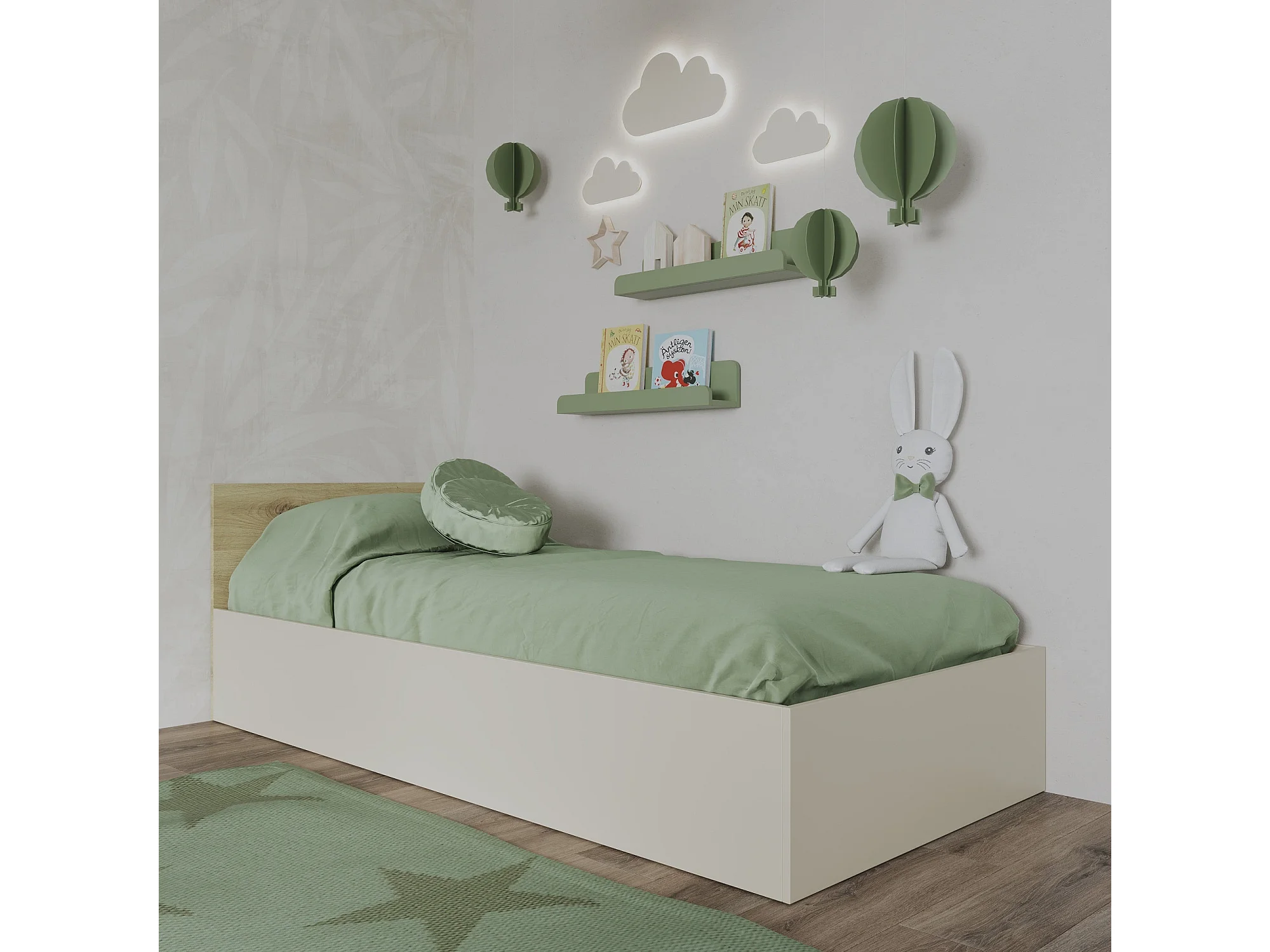 Bed Malmo, 200 x 90 cm, schuimmatras inbegrepen, Artisan eiken/Klei