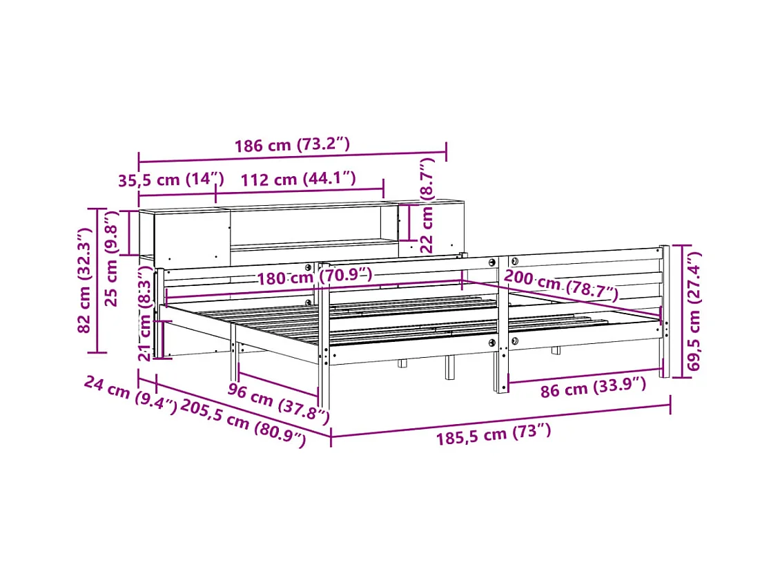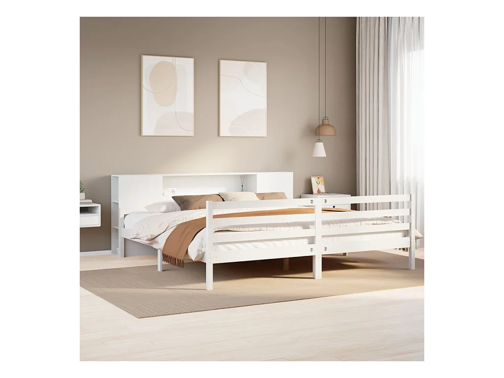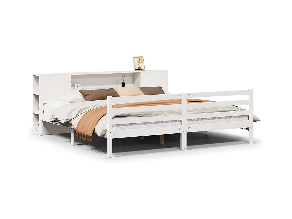 Bed met boekenkast zonder matras grenenhout wit 180x200 cm