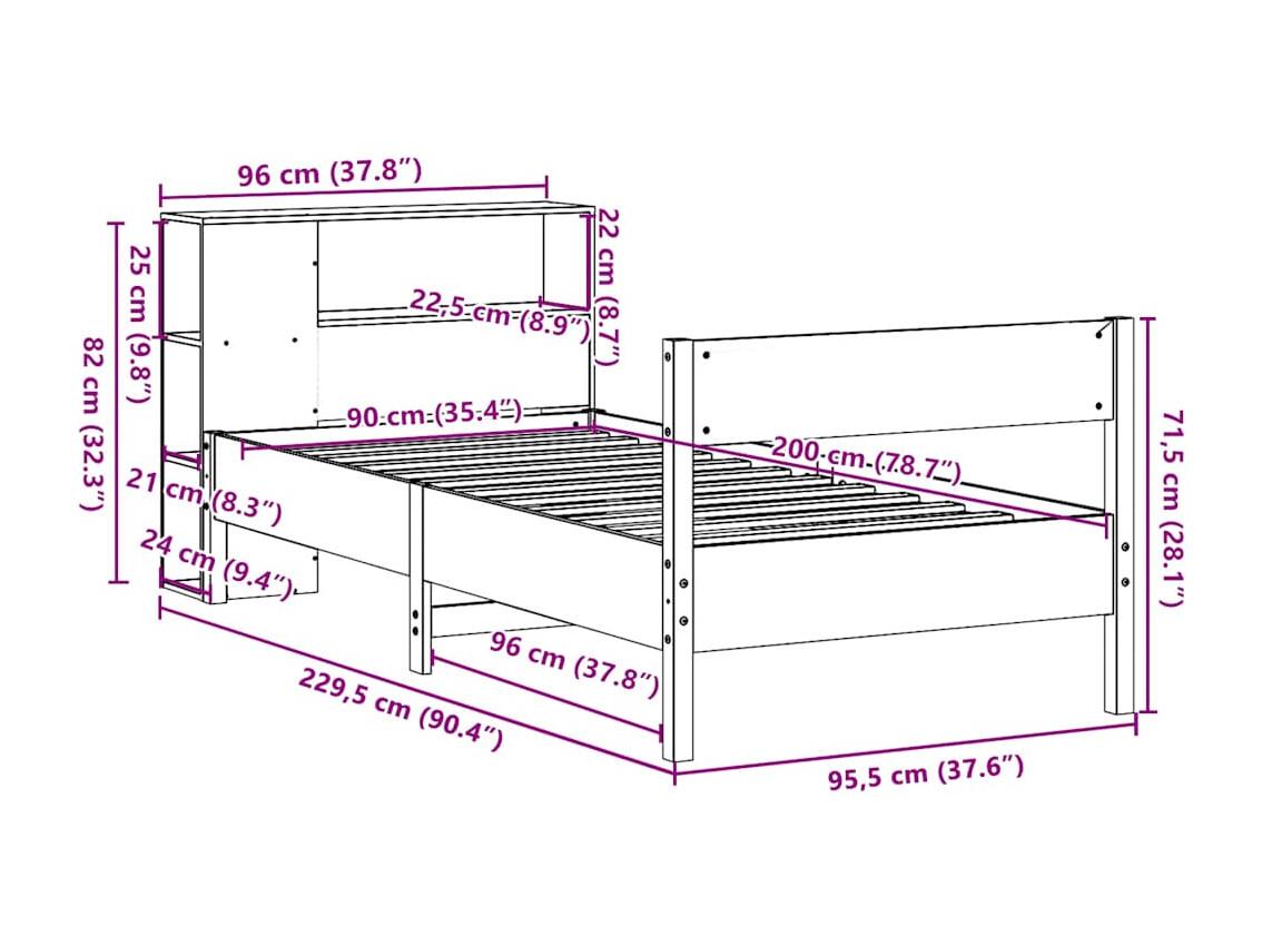 Bed met boekenkast zonder matras massief hout wit 90x200 cm