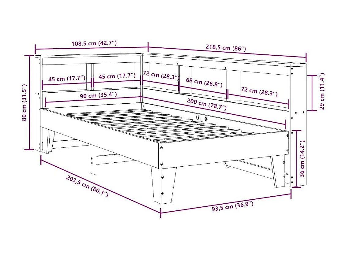 Bed met boekenkast zonder matras grenenhout wit 90x200 cm