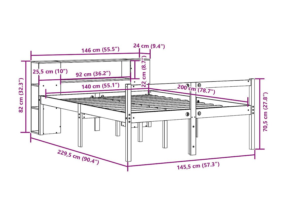 Bed met boekenkast zonder matras massief grenenhout 140x200 cm