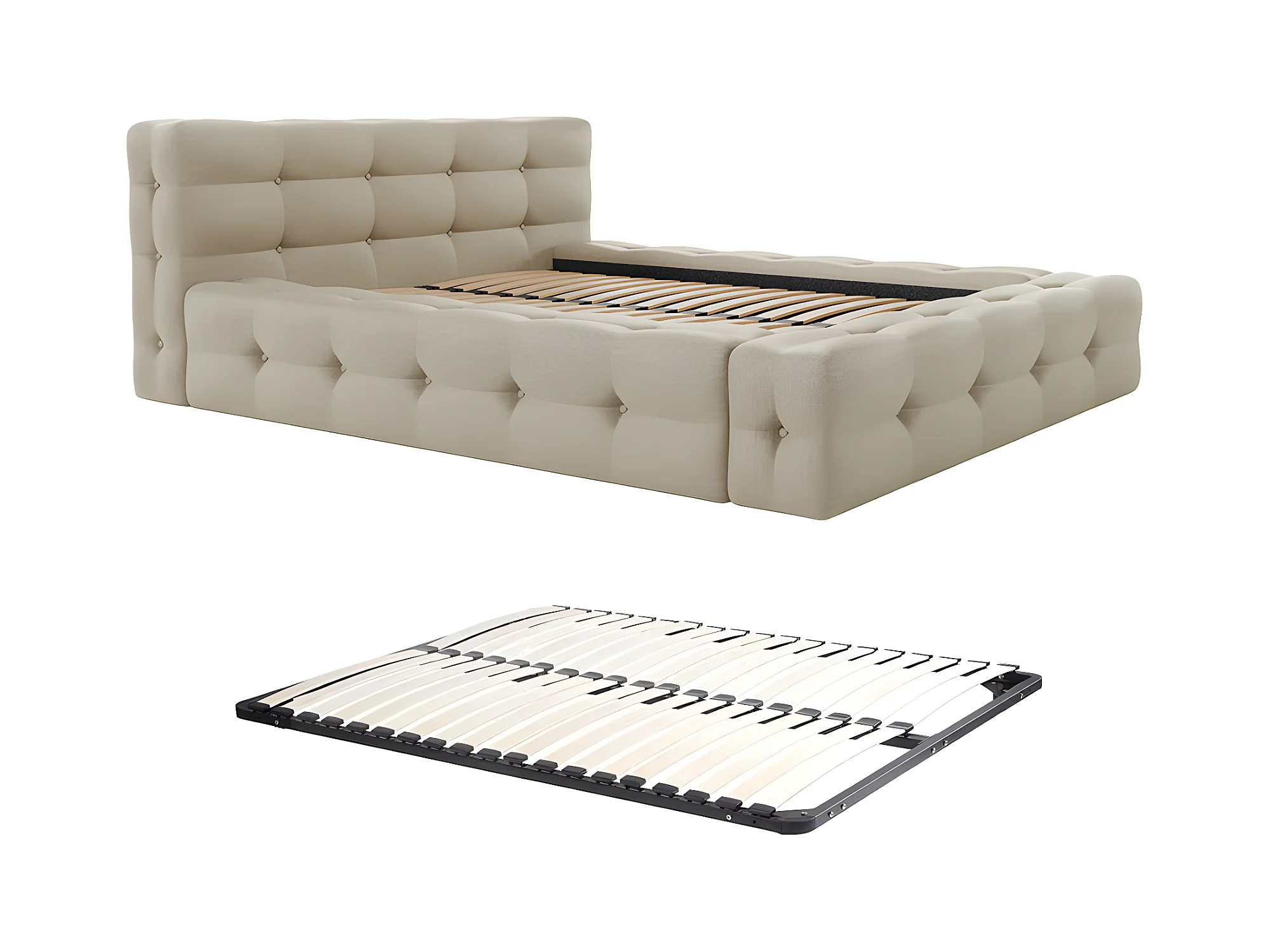 Bed met capitonnage 160 x 200 cm - Gechineerde stof - Beige + bedbodem - LERUCO van Pascal Morabito
