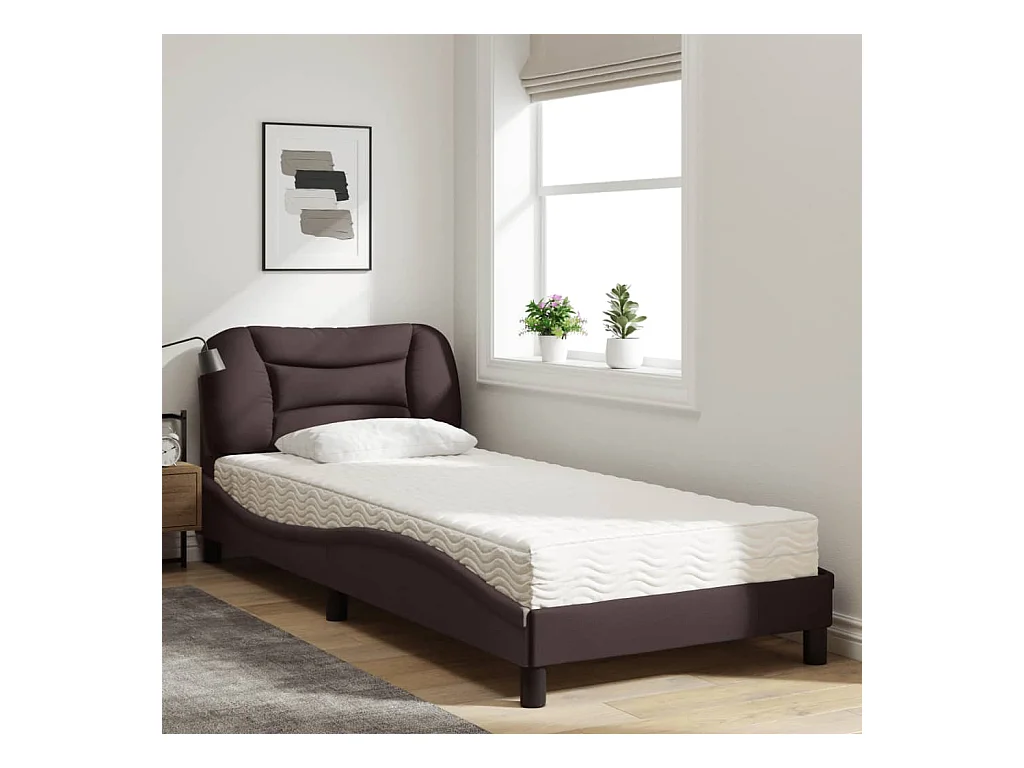 Bed met cappuccino matras 90x200 cm imitatieleer