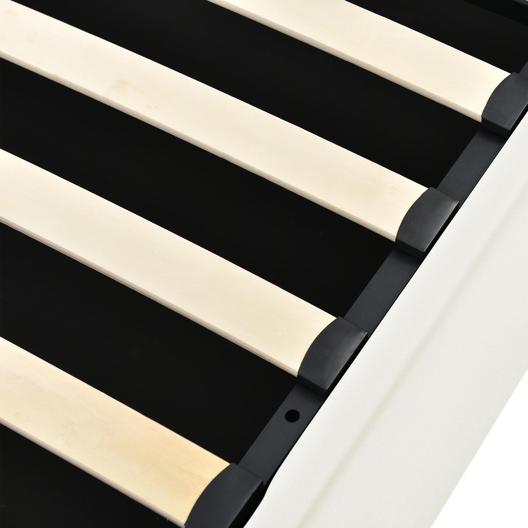 LED gestoffeerd bed, wit imitatieleer, MDF frame met lattenbodem (217x148x112cm)