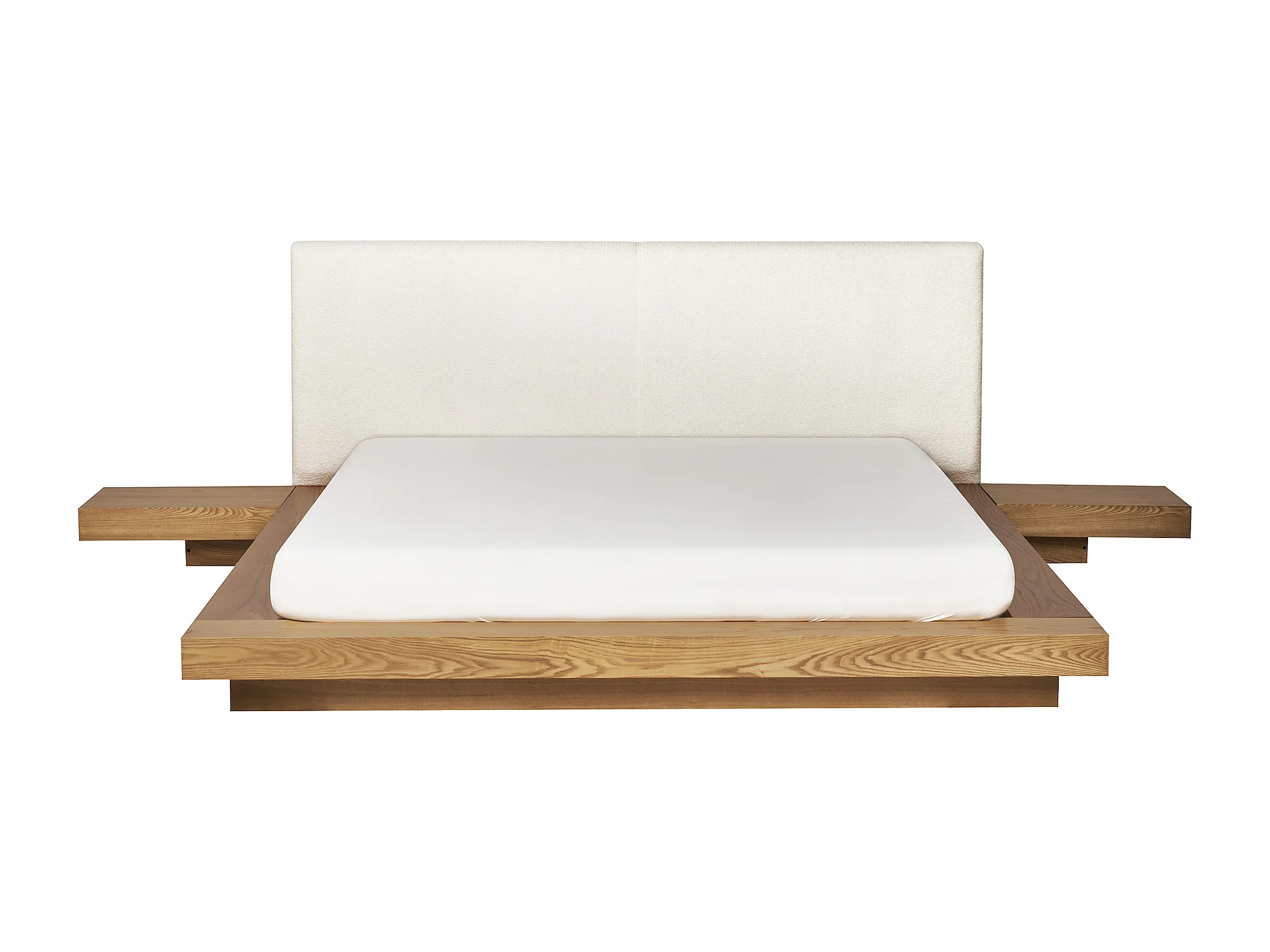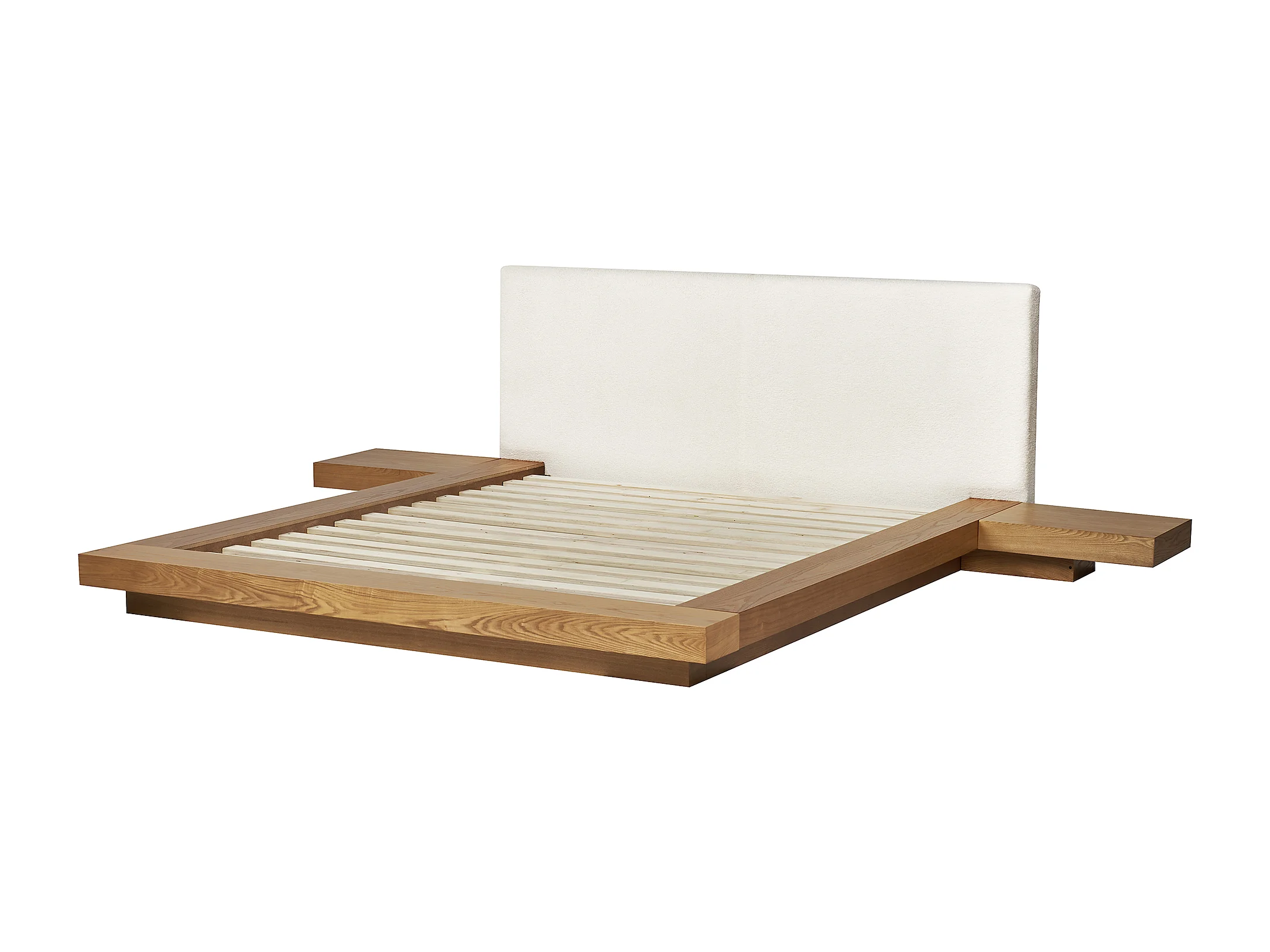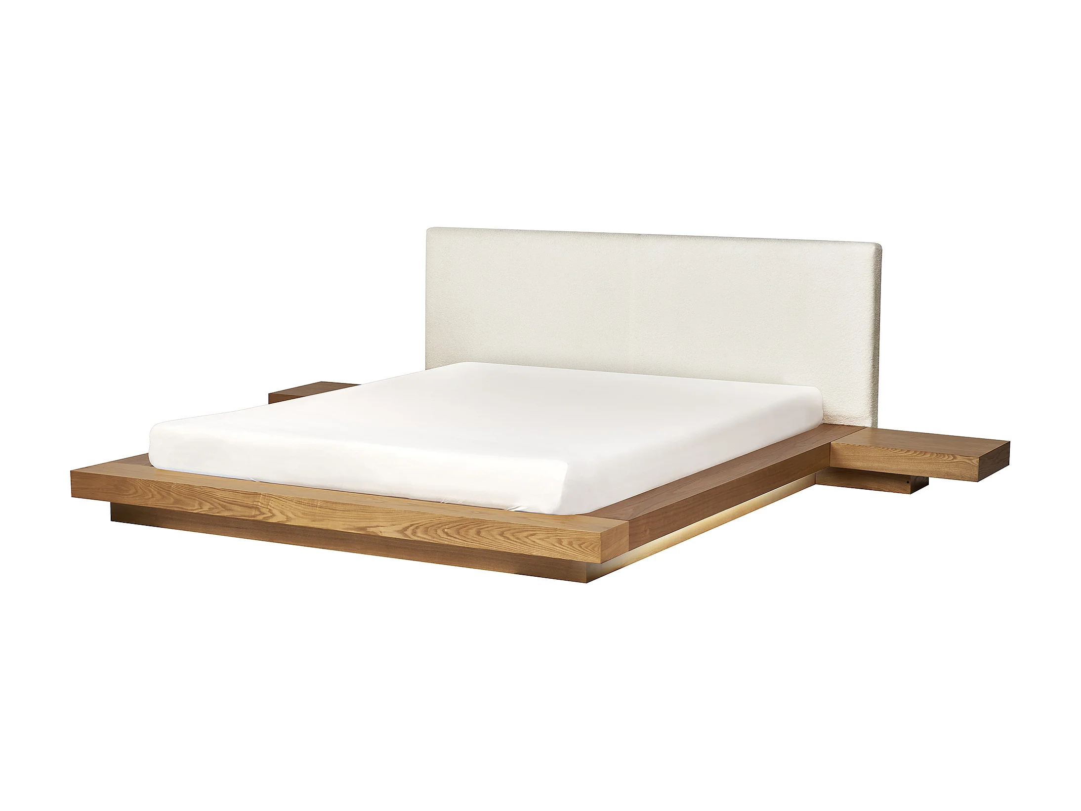 Bed met LED-verlichting Bouclé ZEN 160 x 200 cm LED Natuurlijk essenhout