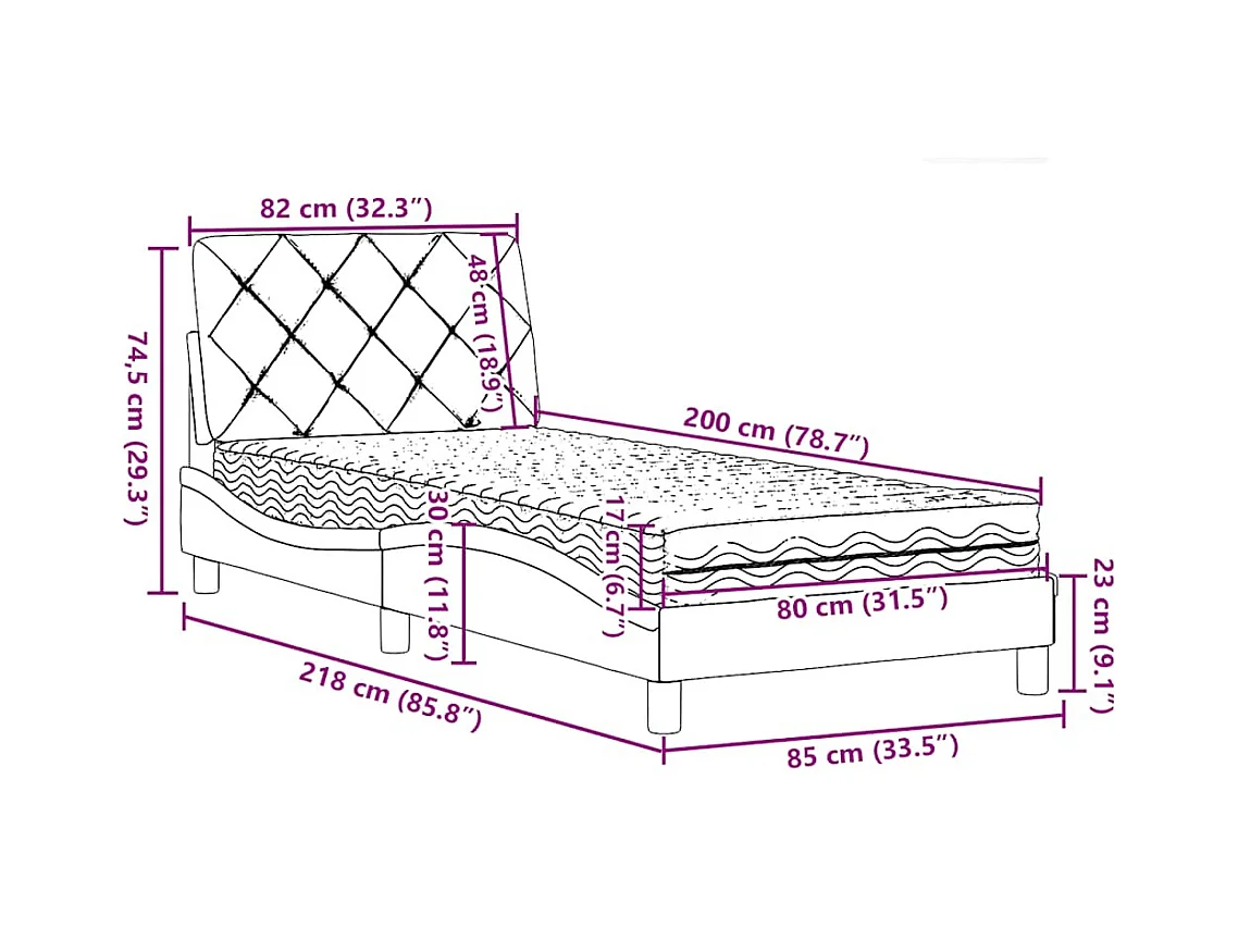Bed met matras "Hvar" stof blauw 80x200 cm