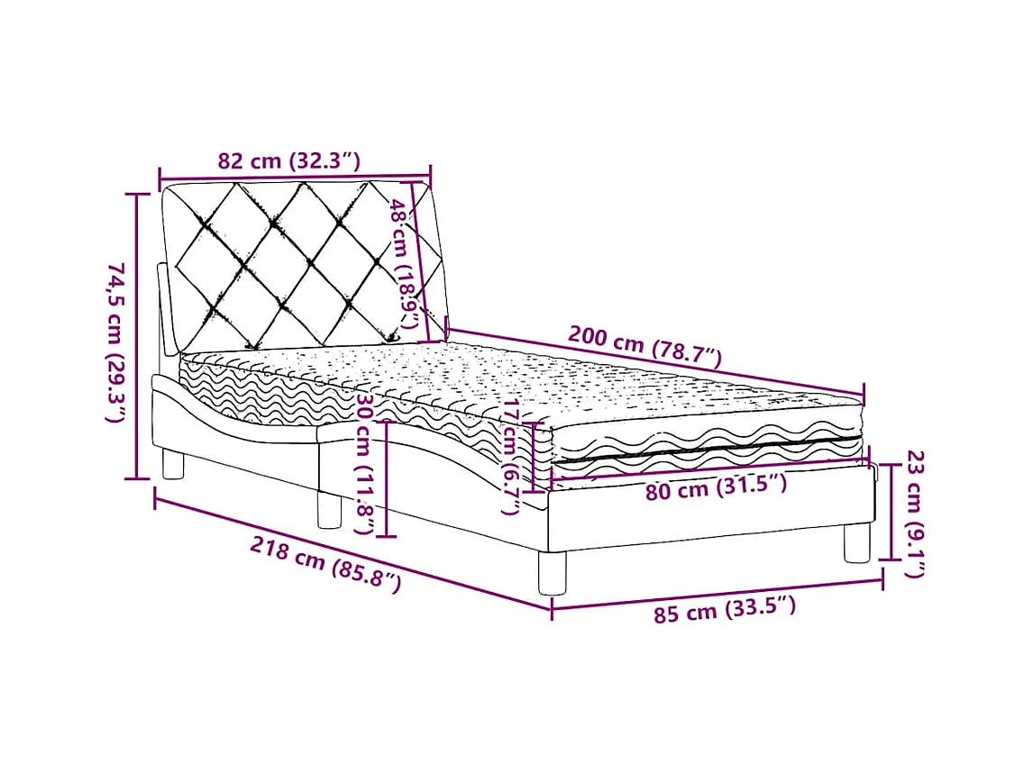 Ottoman bed met matrassen 80x200cm fluweel zwart
