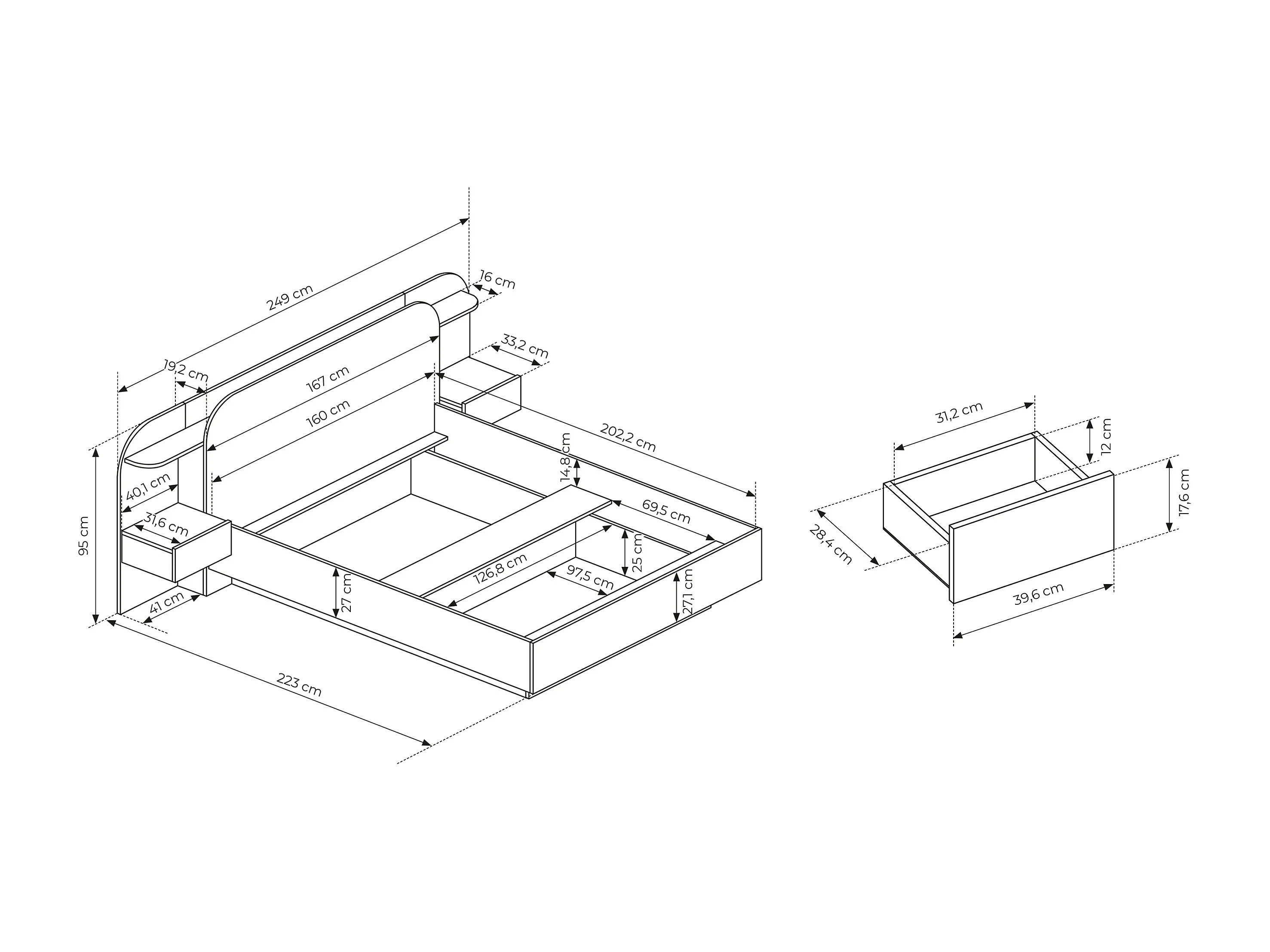 • Ingebouwde nachtkastjes