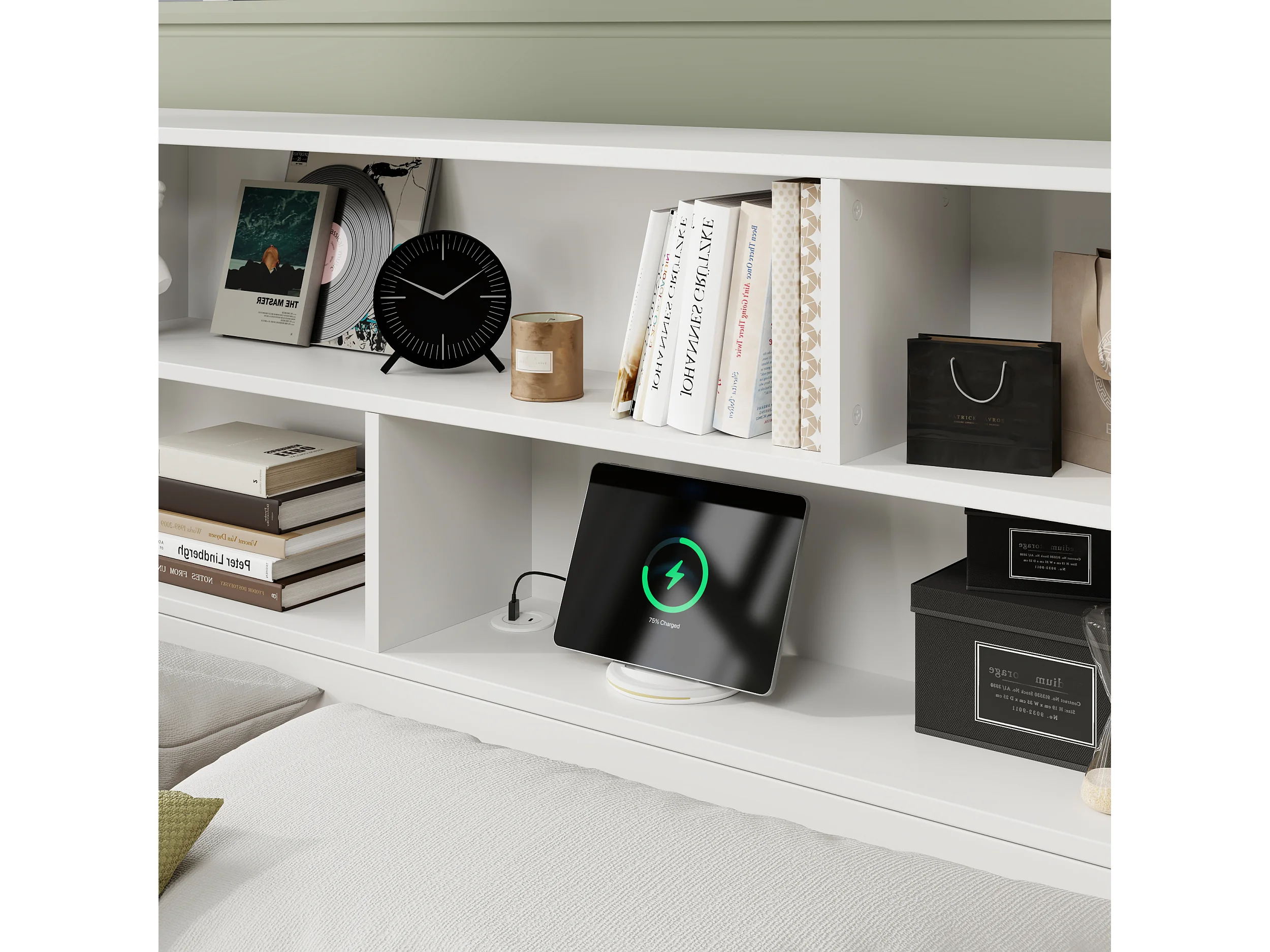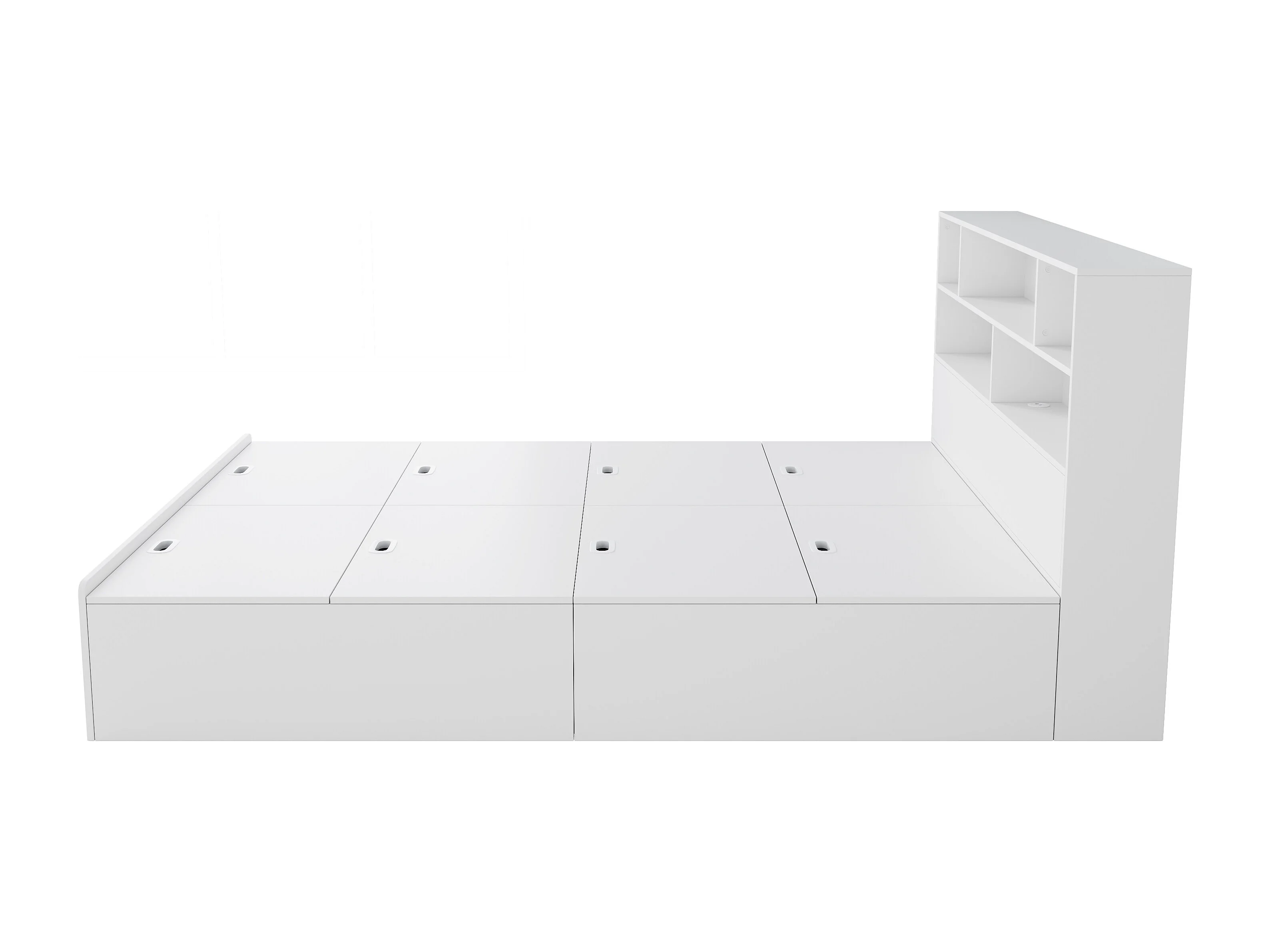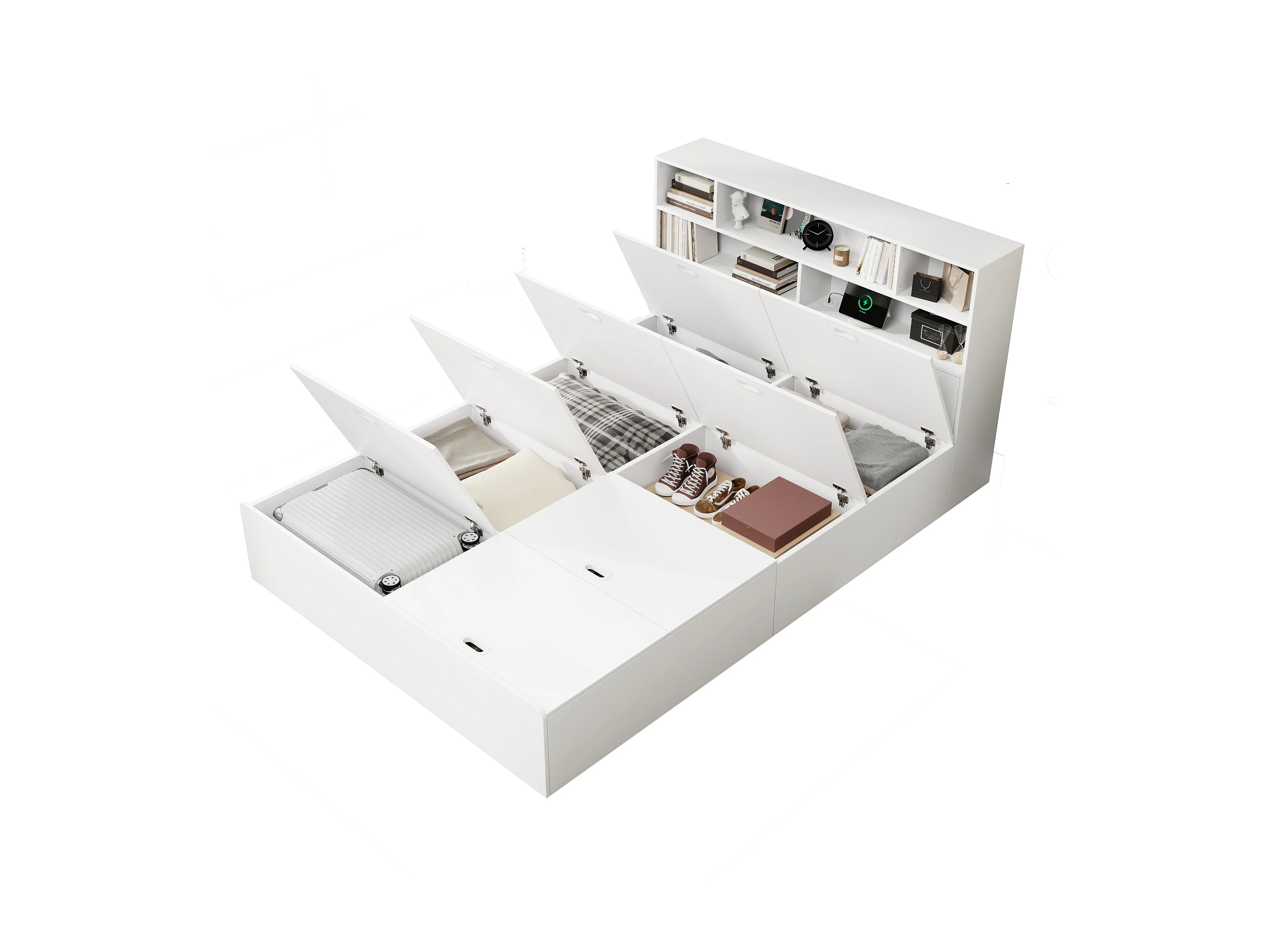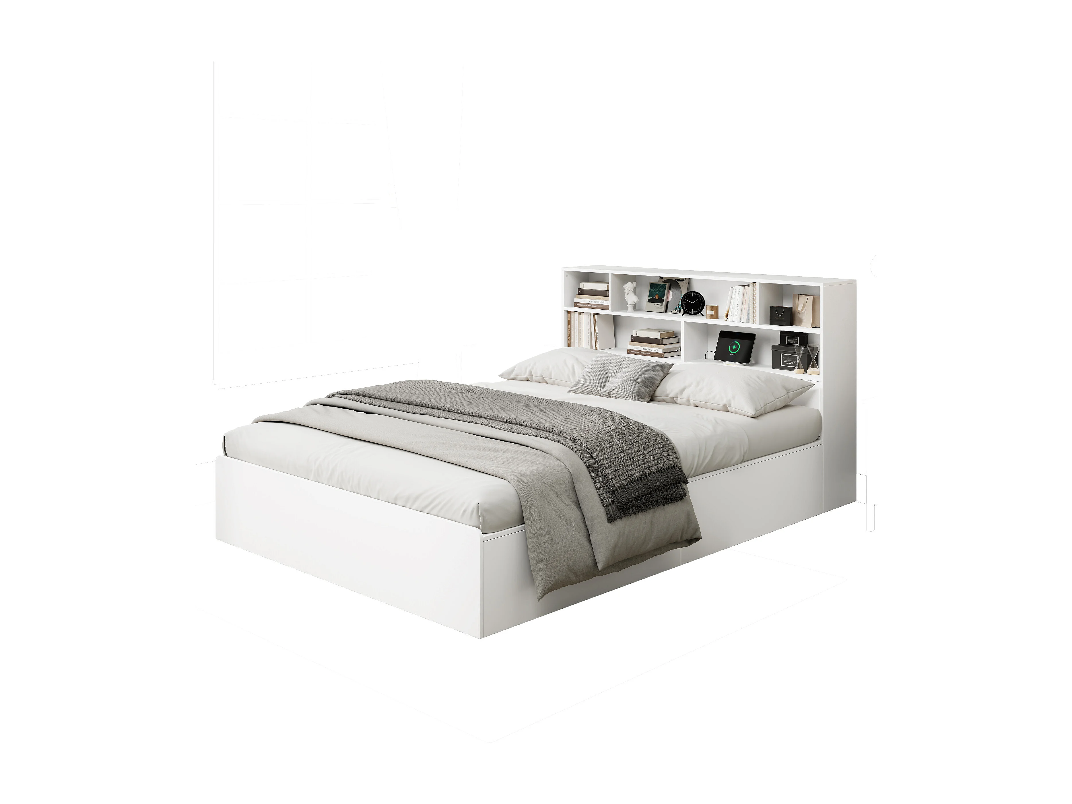Bed Met Opbergruimte 140x200cm - Met USB-A en USB-C Oplaadpunten - 8 Opbergboxen - Met Nachtplank - MDF Modern - Wit - Zonder matras
