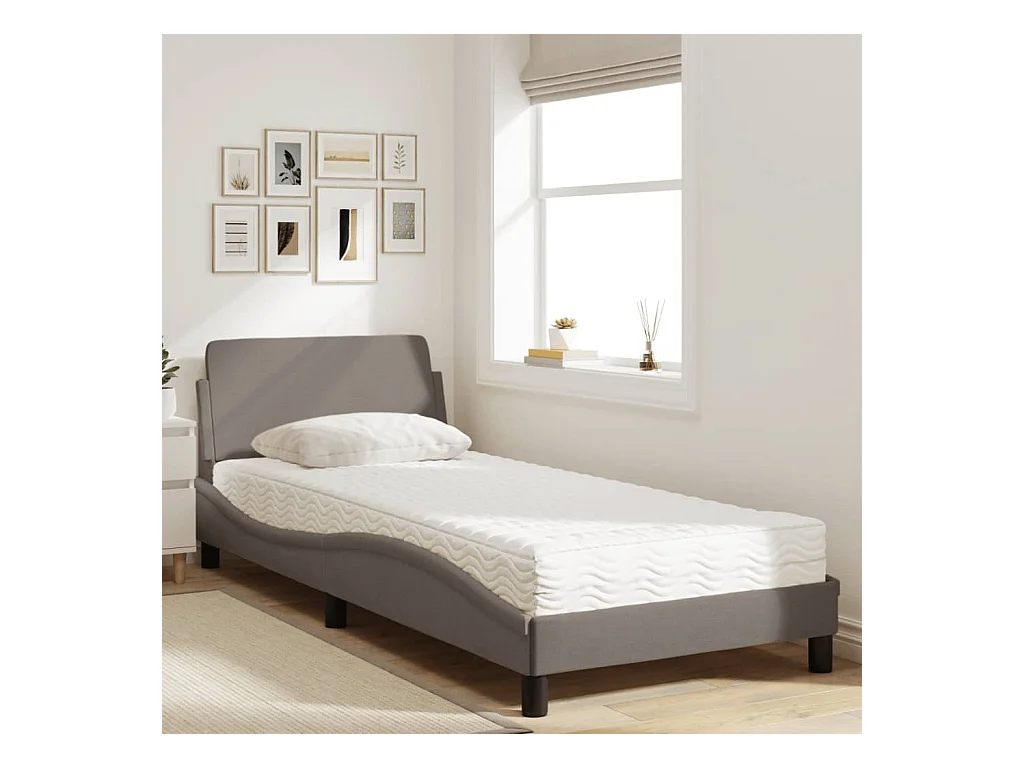 Bed met taupe matras 90x200 cm stof