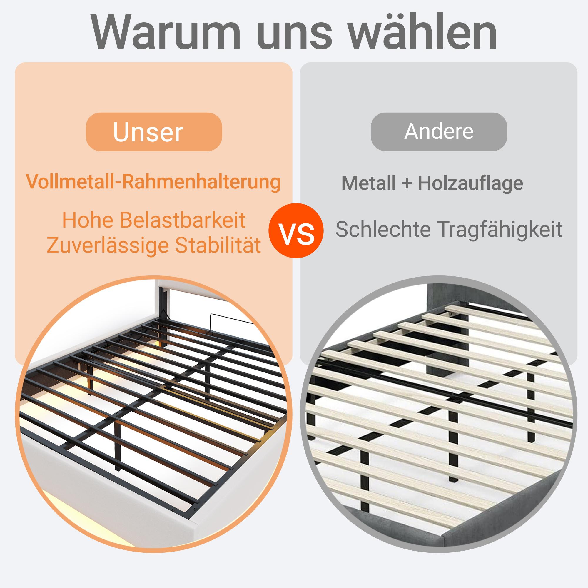 Bed 160x200 cm met USB en LED, verborgen potendesign, beige linnen stof (213x165x113,5 cm)