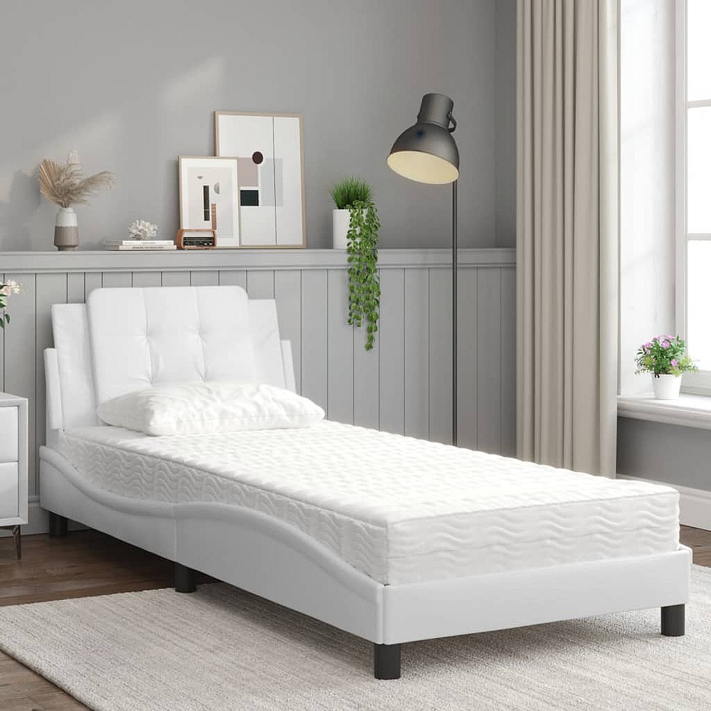 Bed met witte matras 100x200 cm imitatieleer