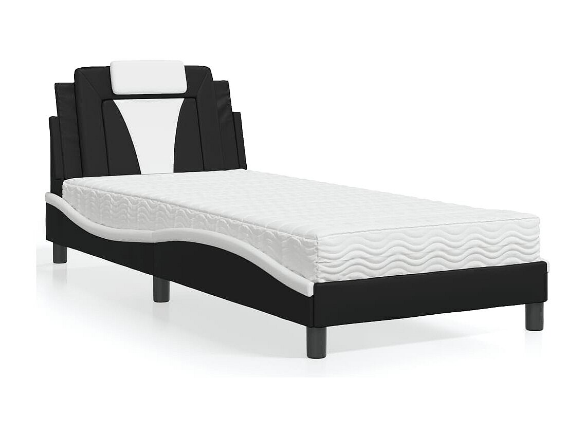 Bed met zwart-witte matras 90x190 cm imitatieleer