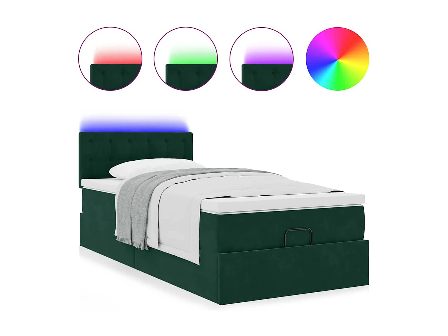 Bed poef met matras en LED's 80x200cm fluweel donkergroen