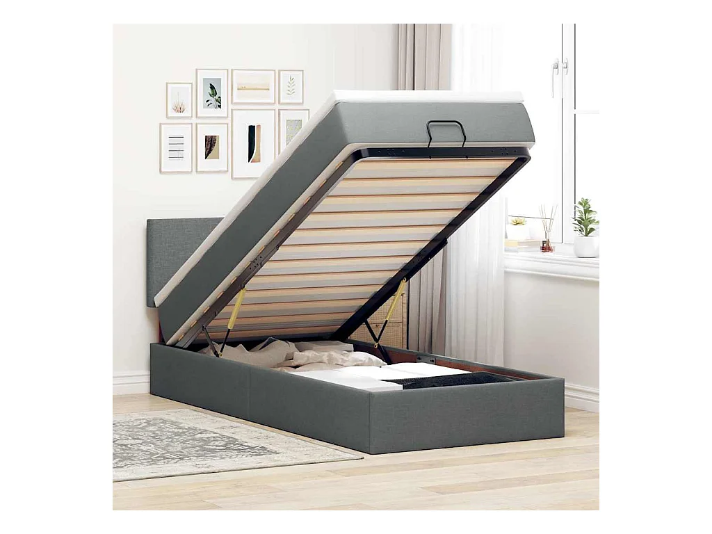 Bed poef met matras en LED's 90x200 cm stof donkergrijs