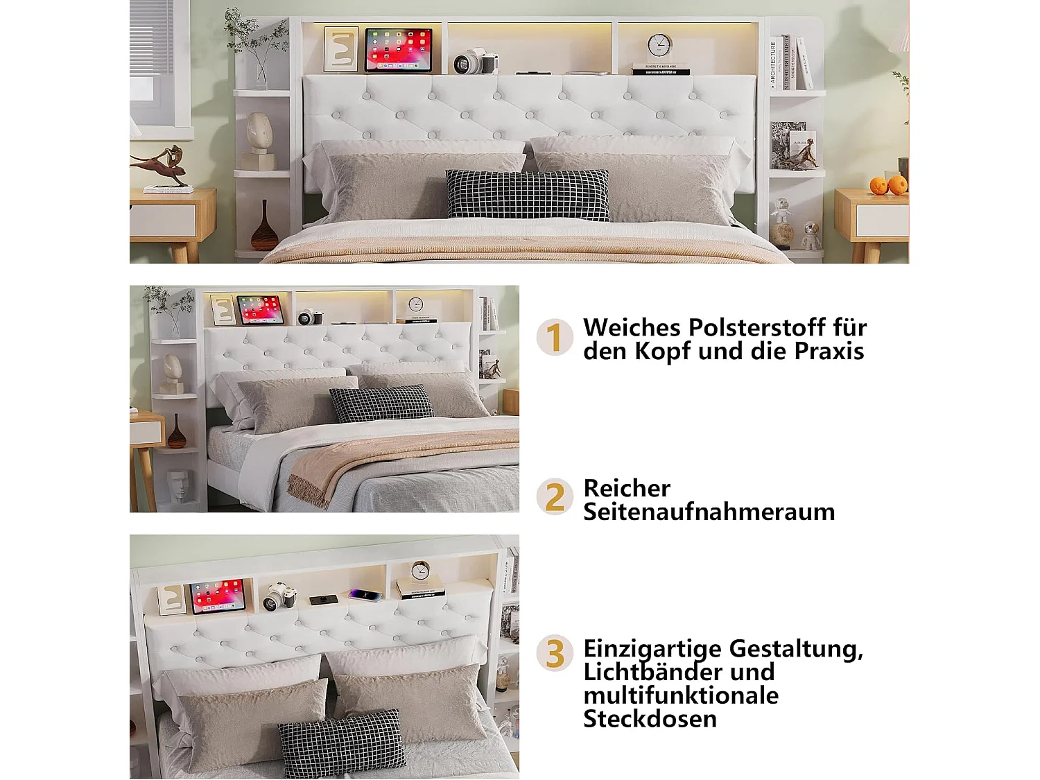 Bed van 140x200 cm met 2 lades, gestoffeerd bed met verstelbare ledverlichting, USB-poort, opbergruimte, fluweel, wit