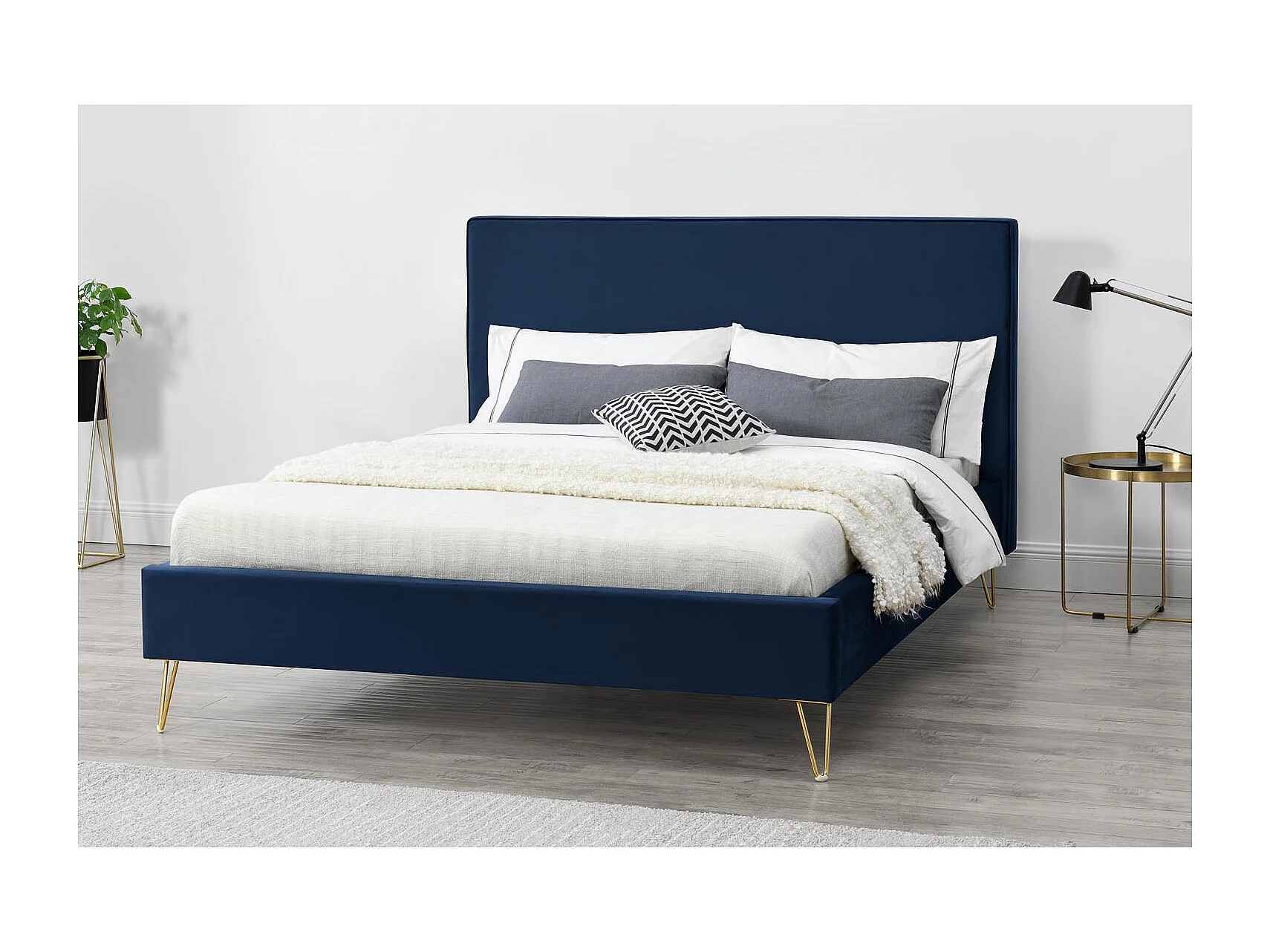 Bed van Blauw Fluweel & Messing Poten 140x190 cm Riverside