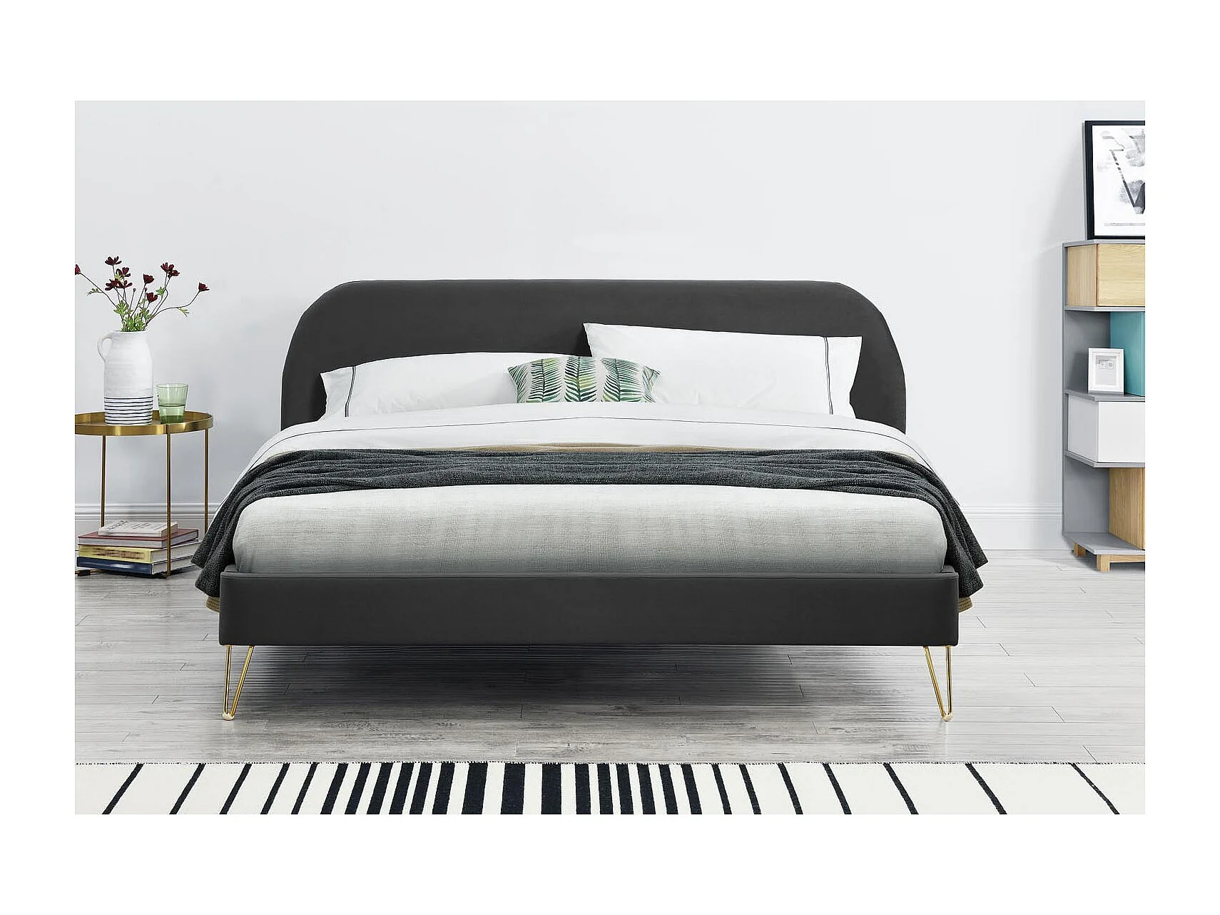 Bed van Grijze Velours & Poten van Messing 160x200 cm PHOENIX