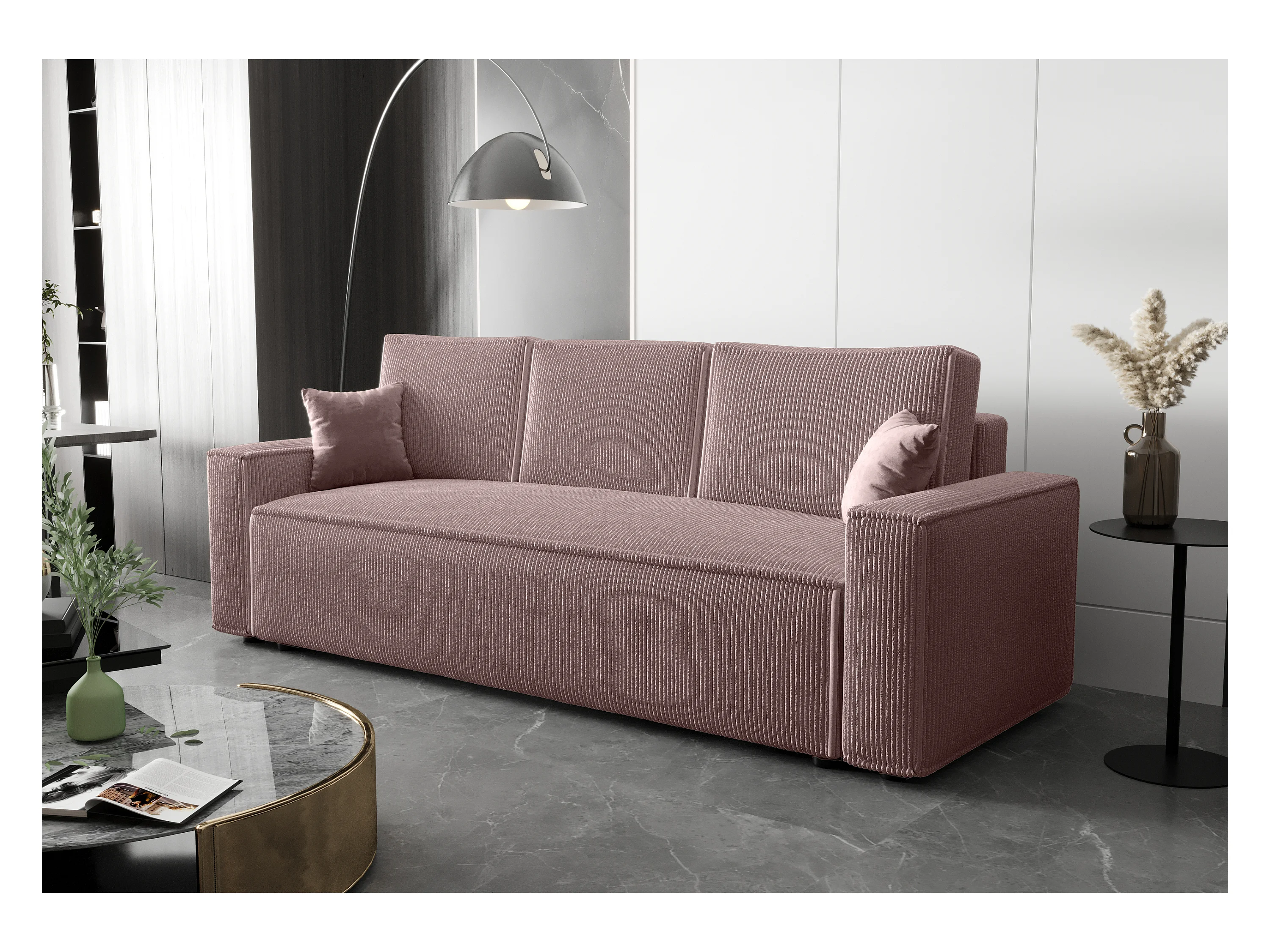 BEDANTE Bank AMBRO Poso 27 met slaapfunctie, poederroze bank met opbergruimte, bedlade, woonkamerbank, slaapbank, Poso-stof, bedbank, logeerbank