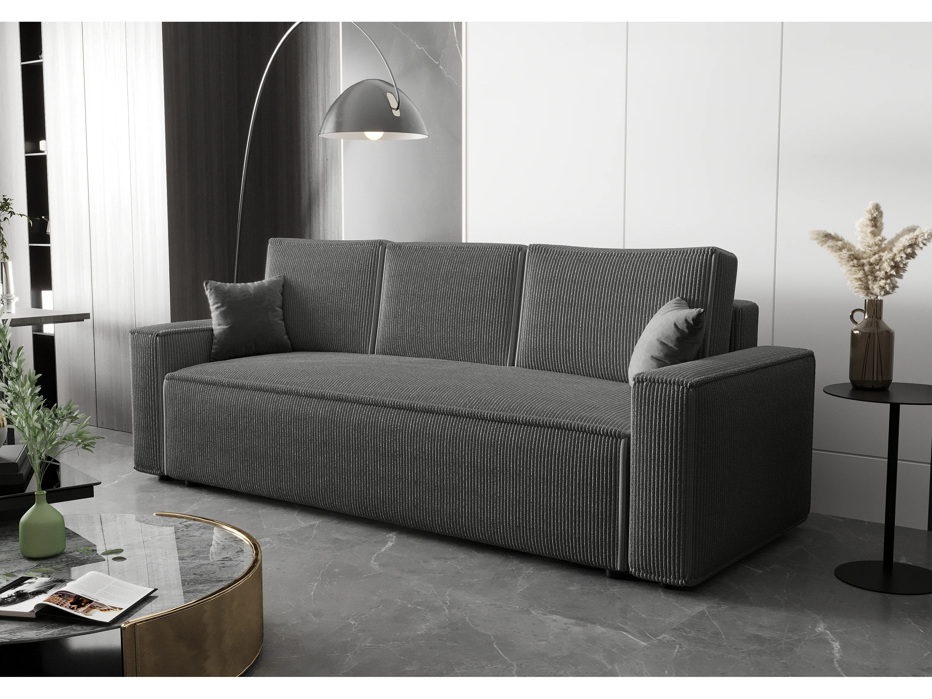 BEDANTE Bank AMBRO Poso 60 met slaapfunctie, grijs bank met opbergruimte, bedlade, woonkamerbank, slaapbank, Poso-stof, bedbank, logeerbank