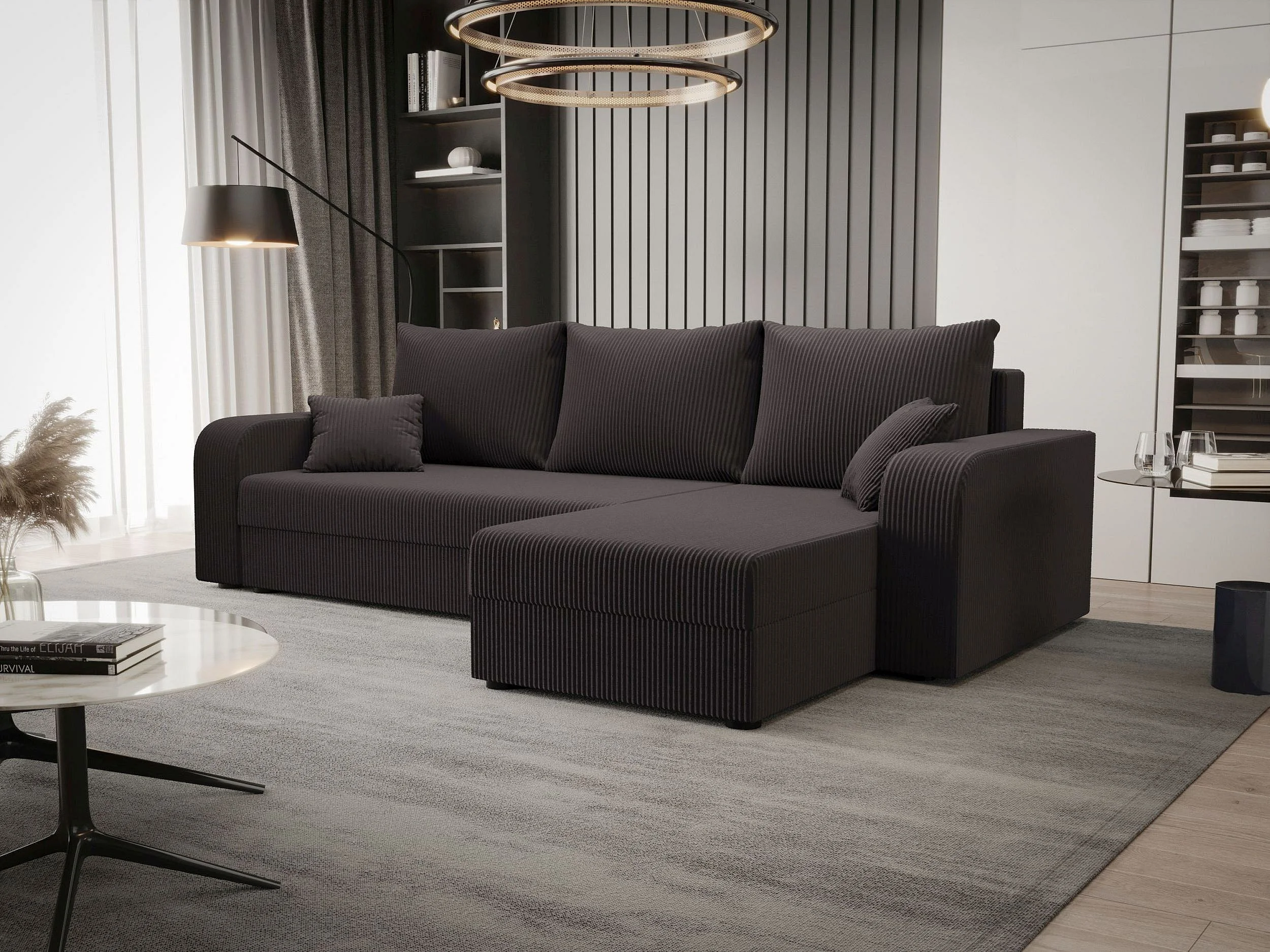HOEKBANK EMILY met slaapfunctie Monolith 84 Grijs Rechts L-vorm bank met opbergruimte, slaapbank, woonkamerbank