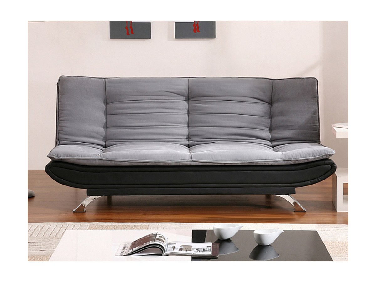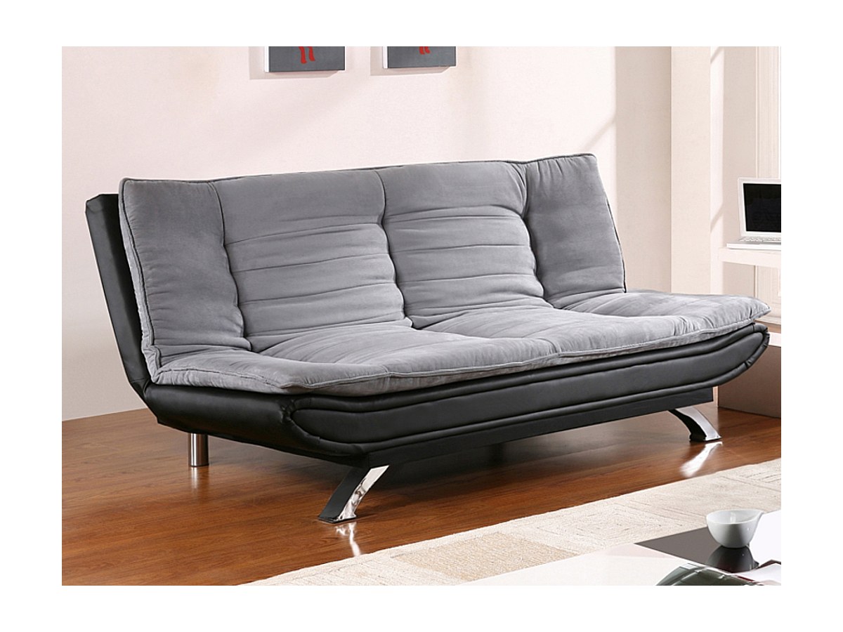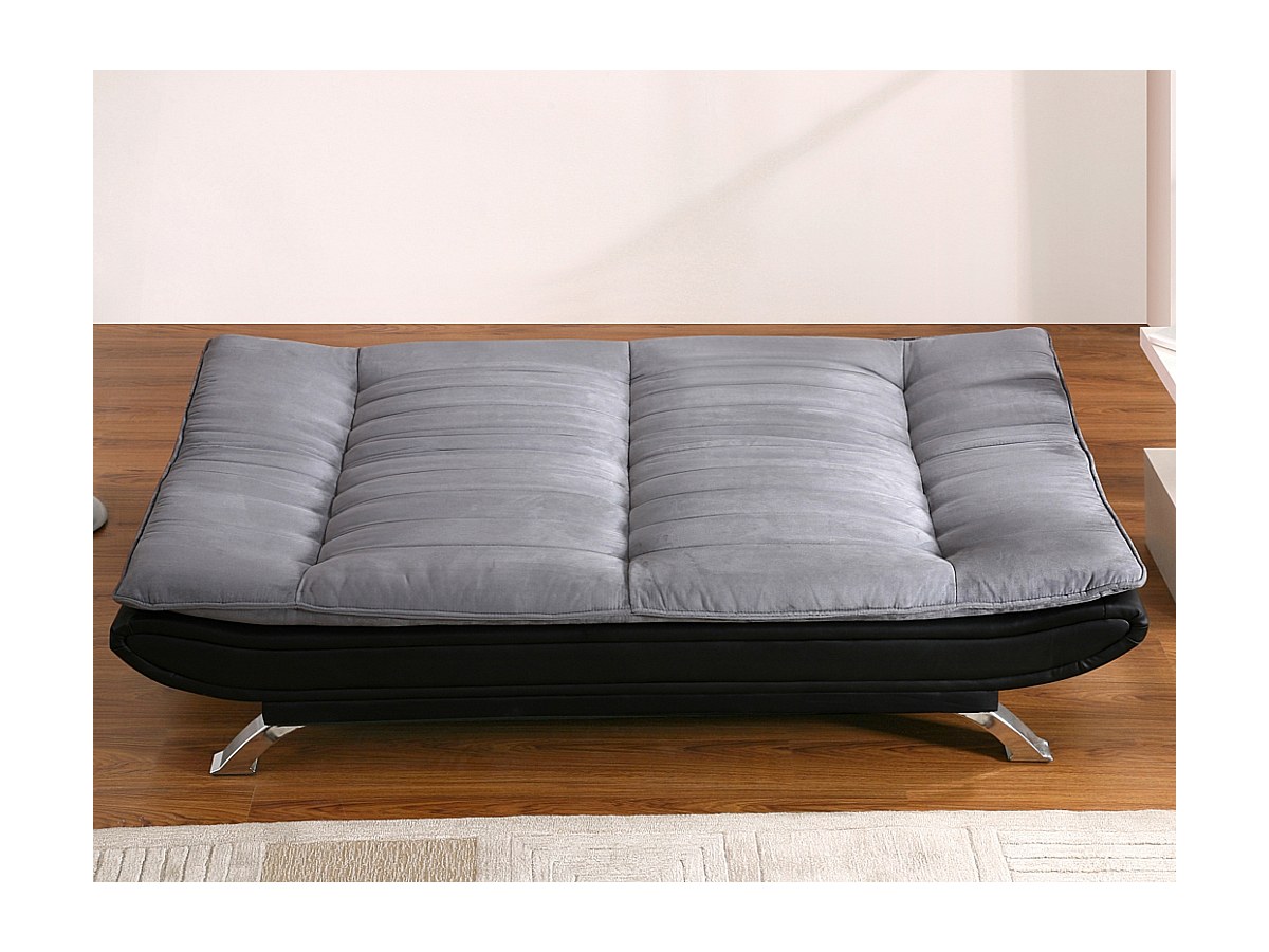 Bedbank van stof en kunstleer DEMIDO III - Grijs en zwart