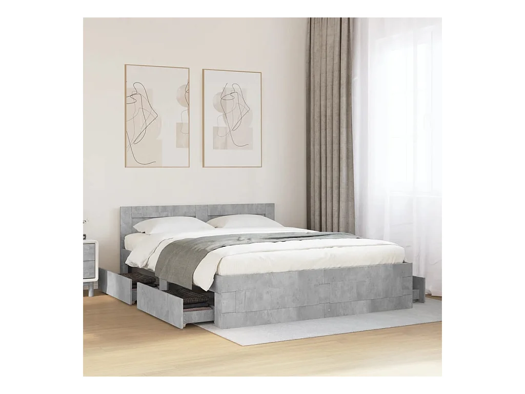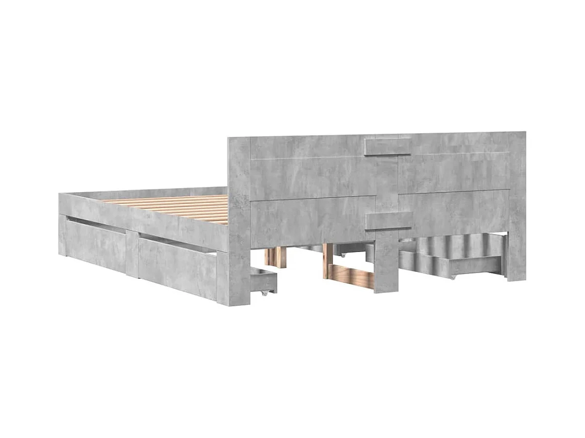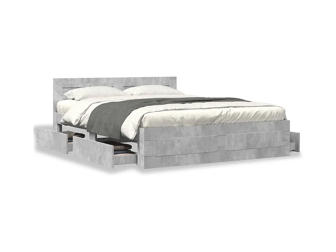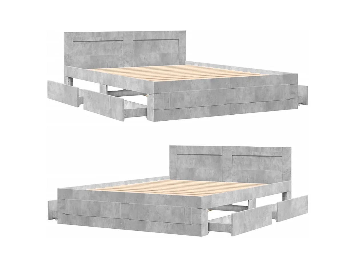 Bedframe met lades zonder matras betongrijs 160x200 cm
