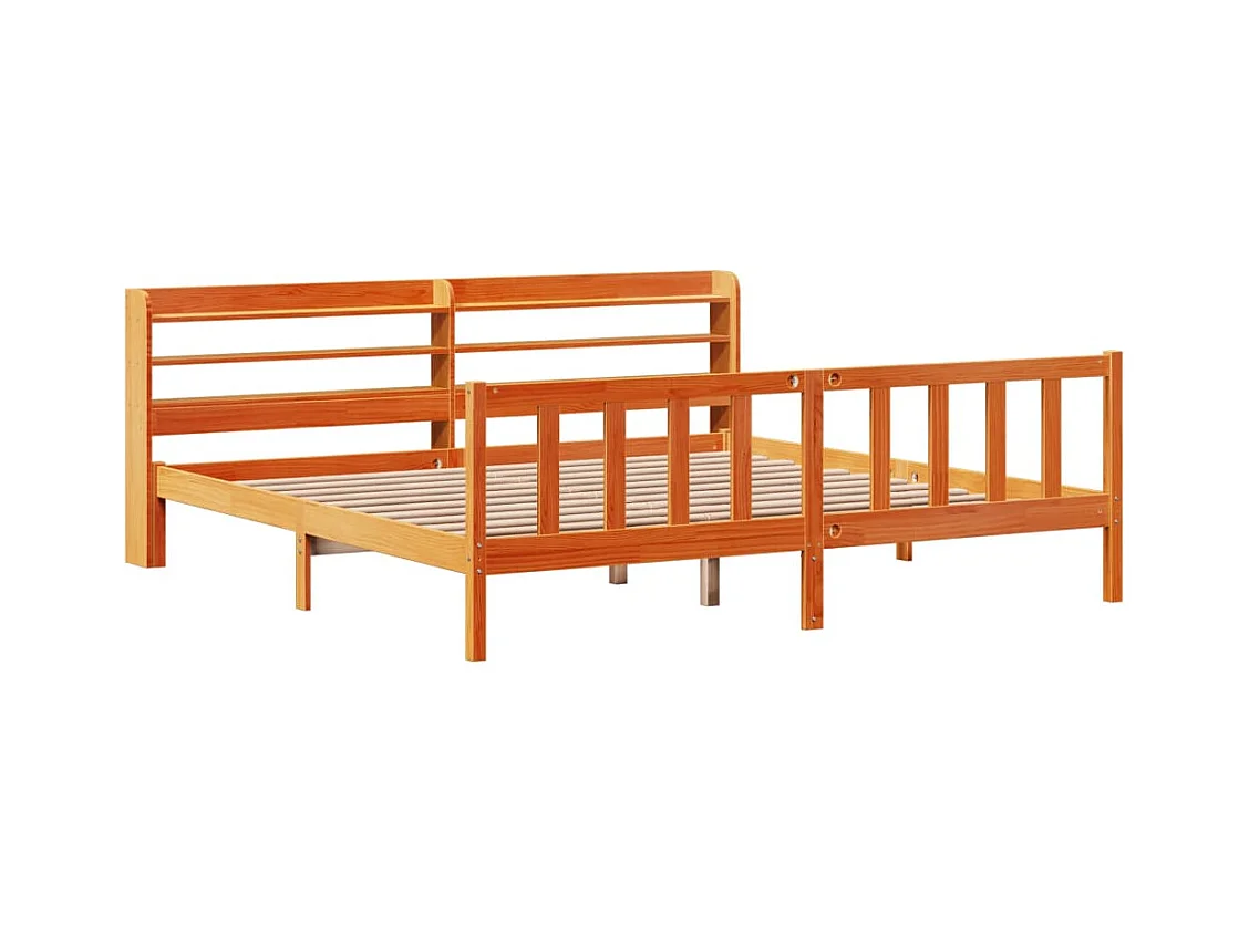 Bedframe en hoofdbord zonder matras bruin gewaxt 180x200 cm