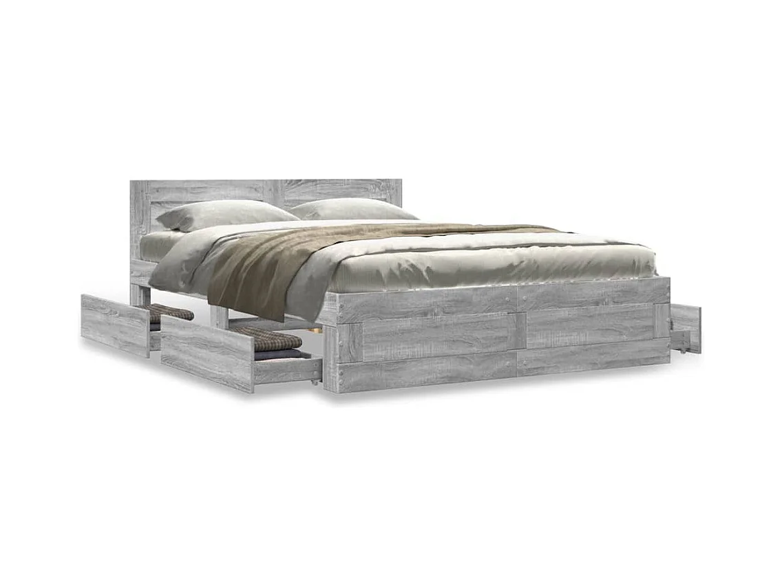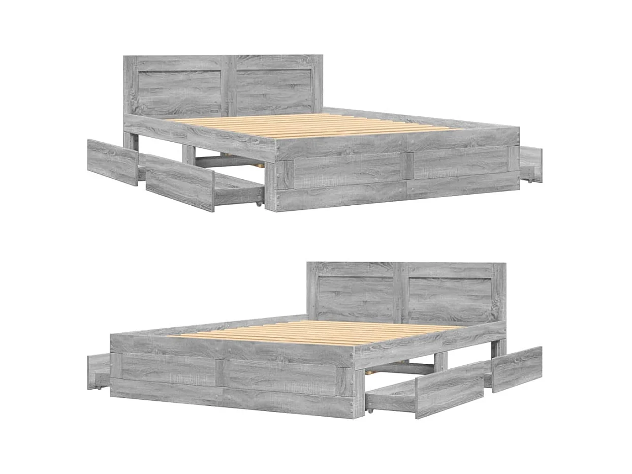 Bedframe met lades zonder matras Sonoma grijs 140x200 cm