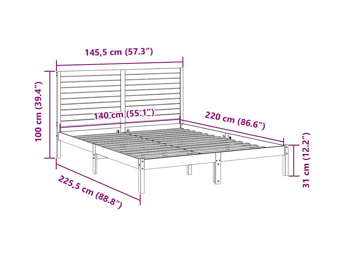 Bedframe extra lang zonder matras massief hout 140x220 cm